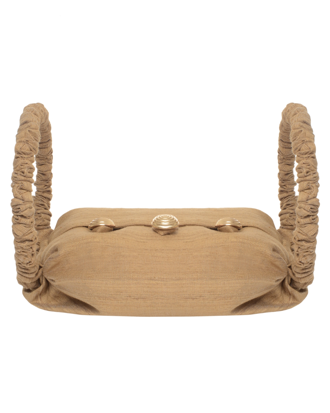 Silk small tote with three gold button fastening and twisted handles.