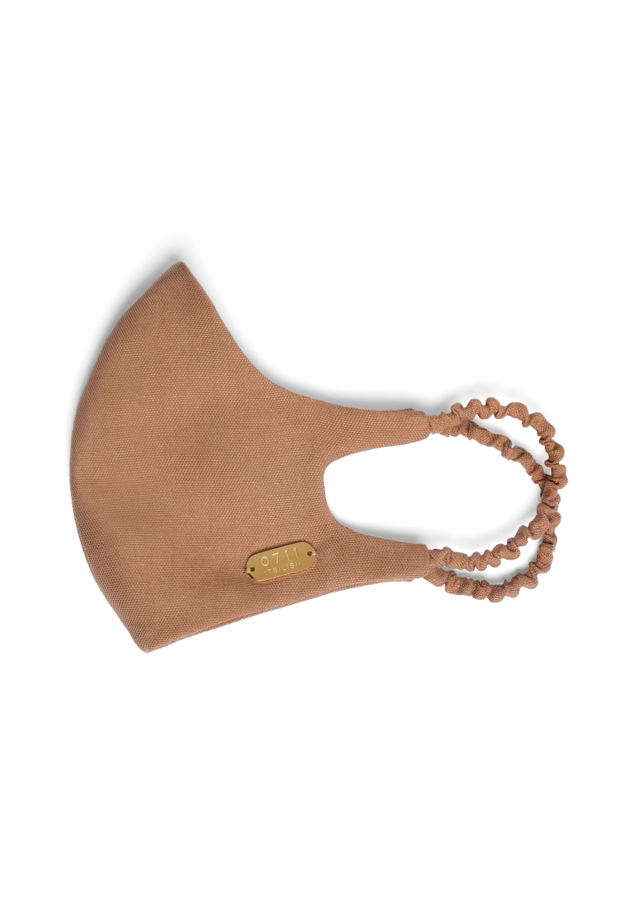 Lightweight camel linen face mask with gold logo is crafted in Tbilisi to keep you safe and comfortable anywhere in the world. Comes in three sizes for a perfect fit.