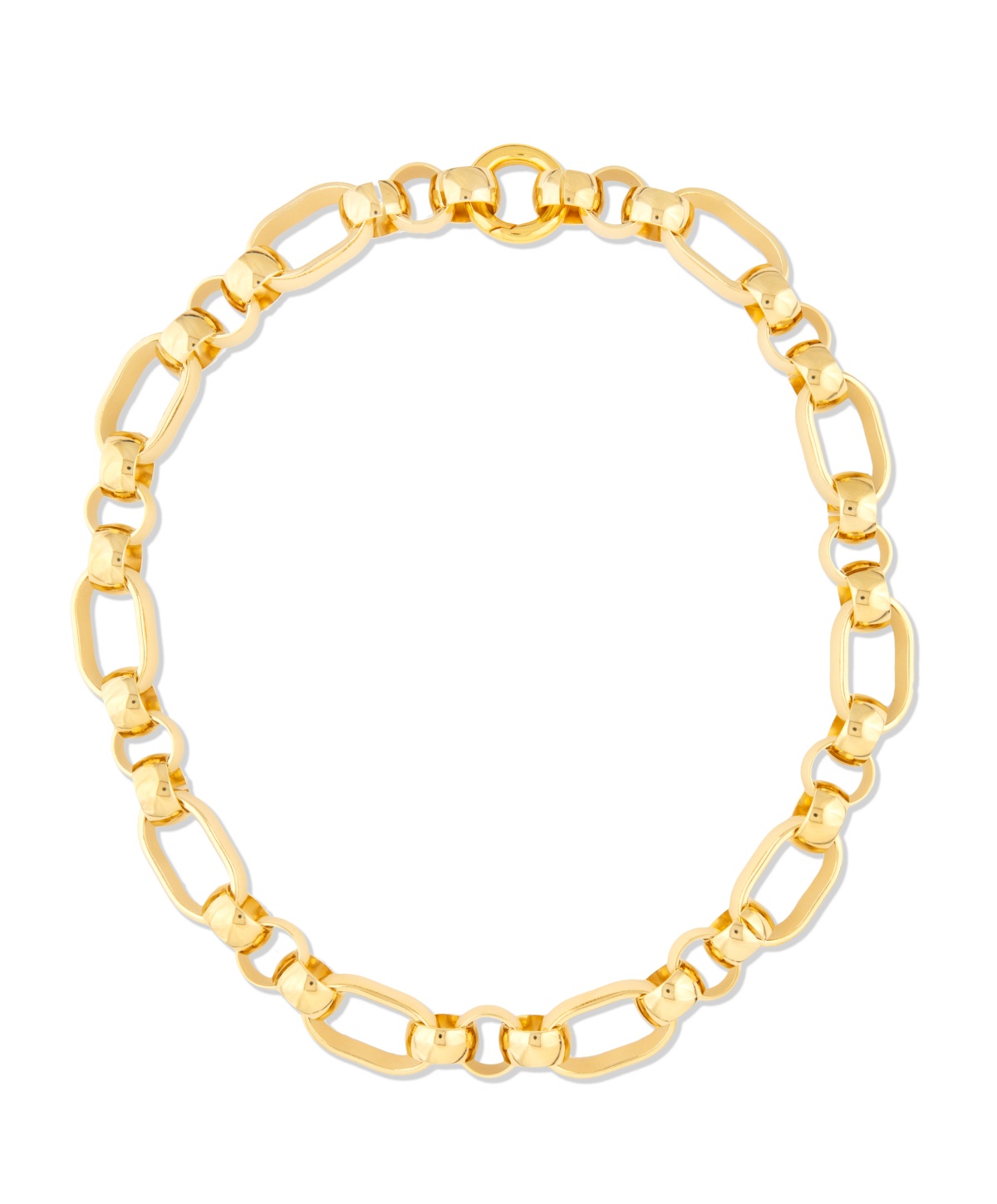 Bringing notions of the past into the present, Laura Lombardi’s Elena Necklace is influenced by a juxtaposition of contemporary industrial style and the designer’s childhood memories. Having a classic chain link-defined silhouette, the design is hand cast from recycled 14kt gold-tone brass and features a spring hook closure.