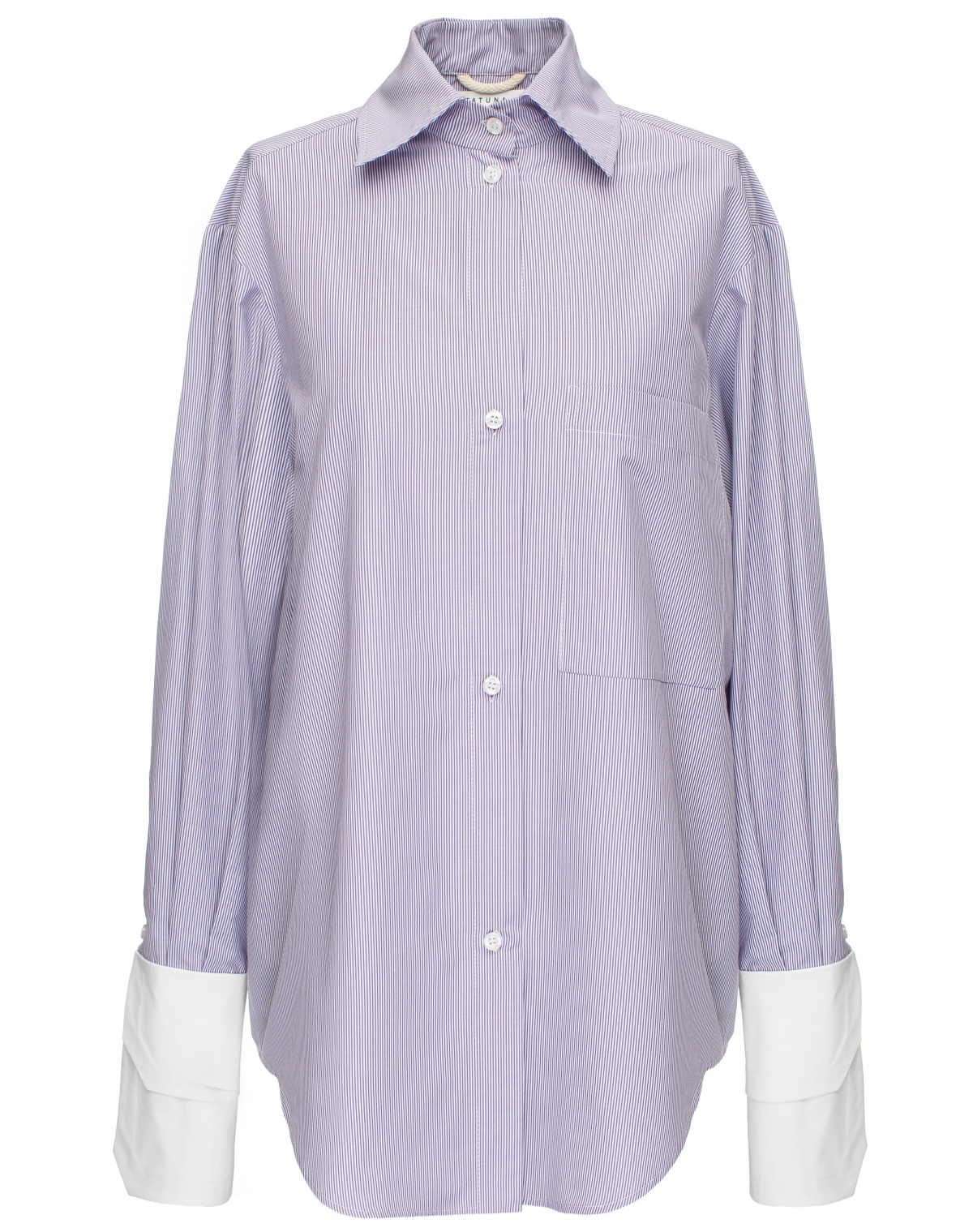 Tatuna was established with an ethos to create sleek and timeless wardrobe essentials, such as Blue Pinstripe Shirt, which nods to classic tailoring codes and stays directional at the same time. The piece features a sharp point collar, contrasting oversized cuffs, button fastening, singular front pocket and voluminous silhouette which ensures a relaxing fit.