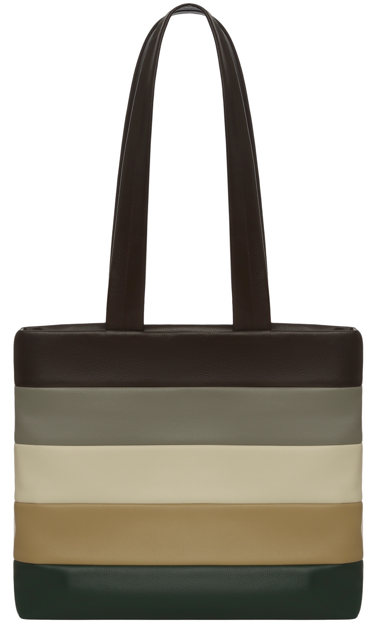 As a representation of the label’s penchant for craftsmanship, Harper shopper tote is executed with a patchwork technique. Built with individual grained vegan leather panels, the bag features a fully lined interior along with two