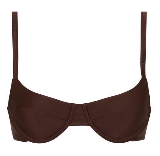 Whether enjoying summer through a tropical gateway or at the local poolside, Matteau’s Carob Balconette Top will offer a solid solution to any swimwear-related challenge. This underwired style can be adjusted to offer the necessary amount of support and features a flirtatious silhouette that is defined by twin needle stitch details.