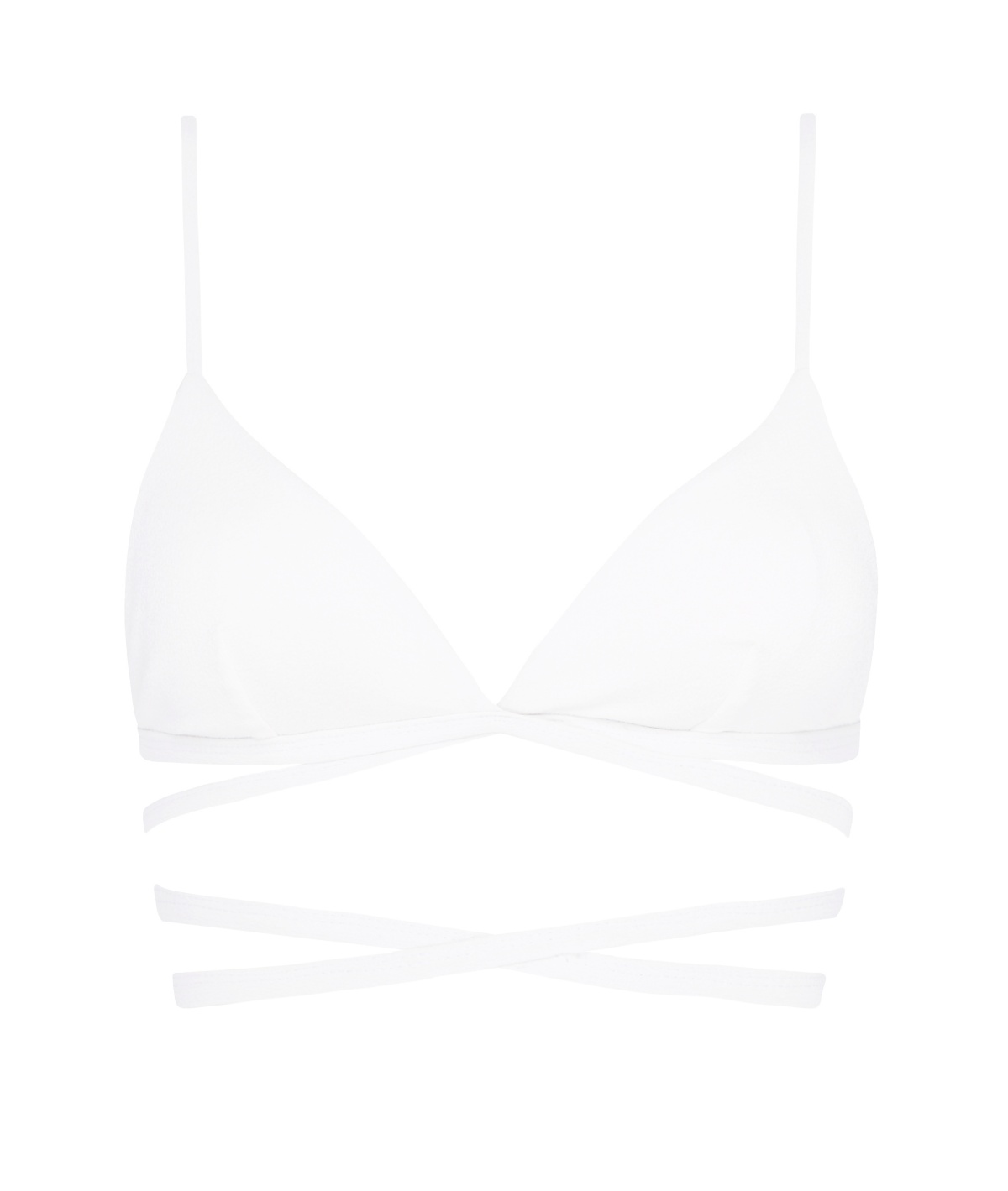 To complement Matteau’s sustainability-driven mindset, Wrap Triangle Top is cut to have a contemporary wrap-around silhouette. The piece comes in a pristine white hue and offers medium coverage while featuring adjustable straps and a seamless finish.