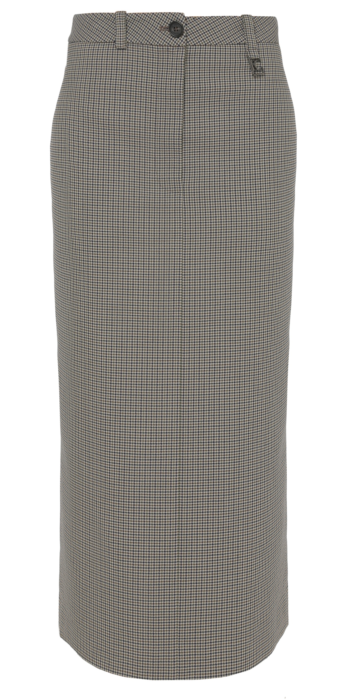 Checked Pencil Skirt from Low Classic will be a perfect addition to any smart-casual repertoire. Defined with a classic silhouette, the piece is cut to have a slim fit and features a front button fastening along with the belt loops and backside vent to ease the movement.