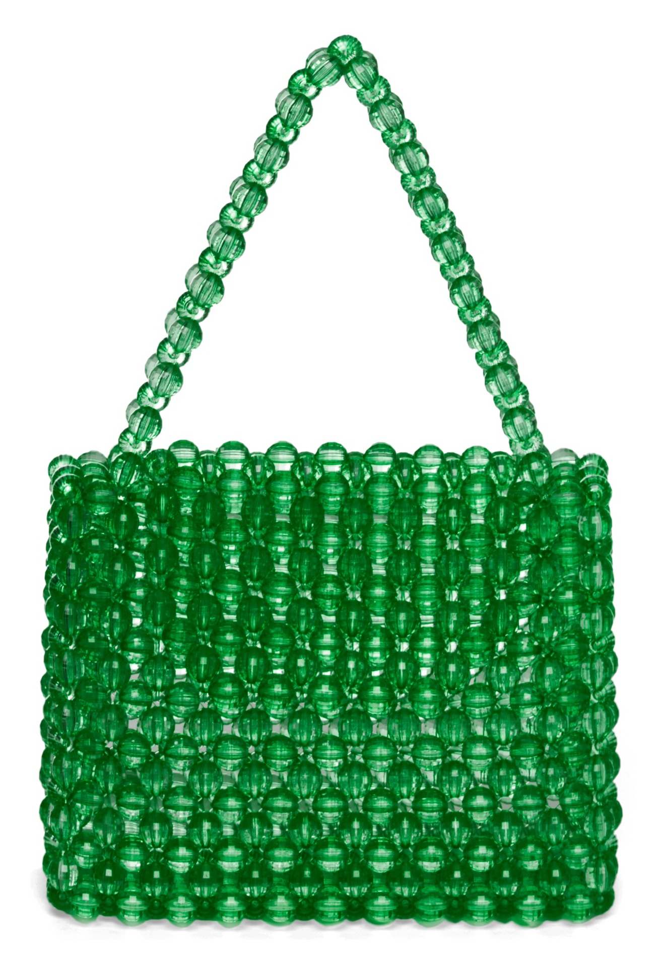 Ani mini tote is a playful everyday bag that perfectly fits into the contemporary arena. Expertly crafted from textured acrylic beads, the bag comes in scaled-down proportions and features a flap closure along with the integrated top handle.