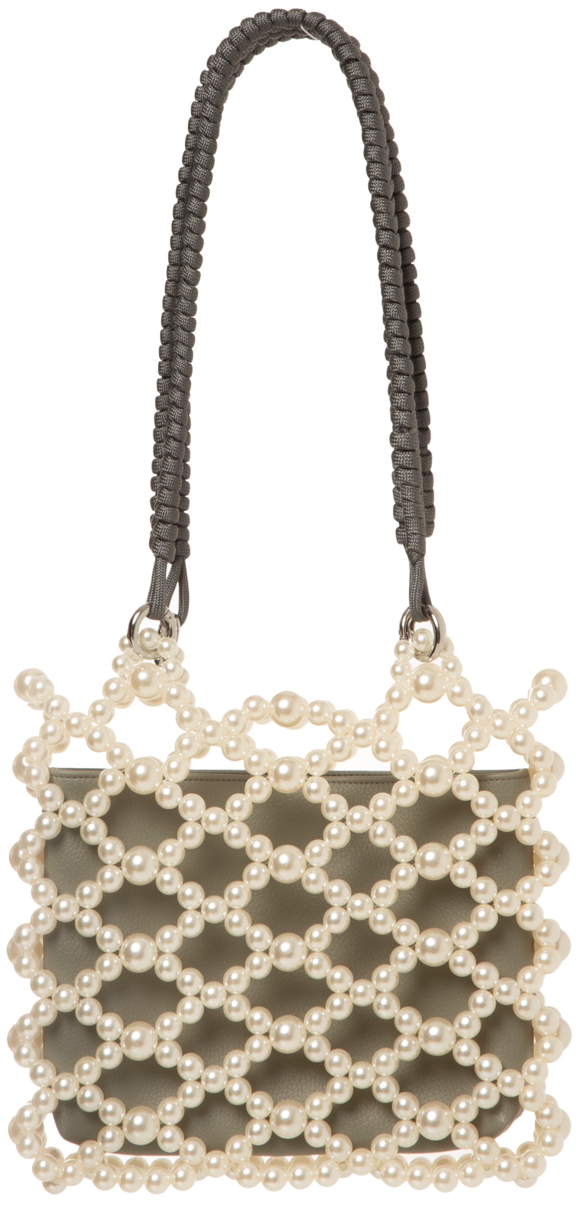 In order to become more suitable for everyday use, the opulent pearl beaded construction of Mathilda is toned down with practical design nuances, such as paracord handles and vegan leather pouch.
