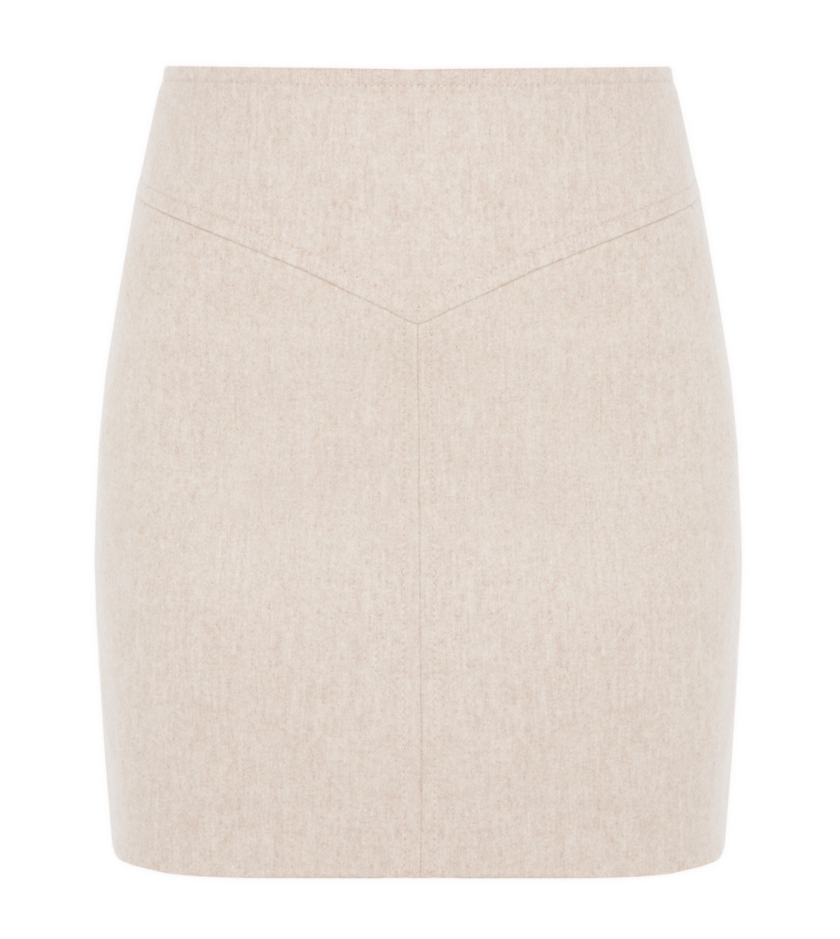 Inherently elegant oatmeal mini skirt comes along with an architectural approach - evident in sharp tailoring and slimline paneled profile. Featuring a fully lined interior along with back zip closure, the structured silhouette of the piece is balanced by sumptuous cashmere-blend fabrication.