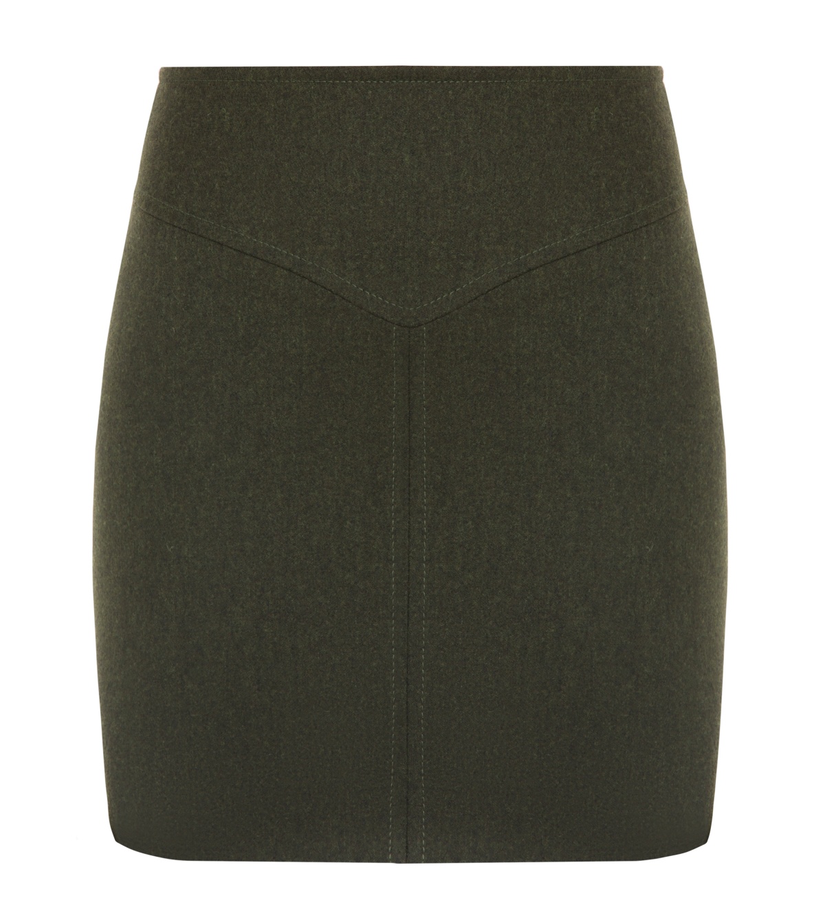 Inherently elegant khaki mini skirt comes along with an architectural approach - evident in sharp tailoring and slimline paneled profile. Featuring a fully lined interior along with back zip closure, the structured silhouette of the piece is balanced by sumptuous cashmere-blend fabrication.
