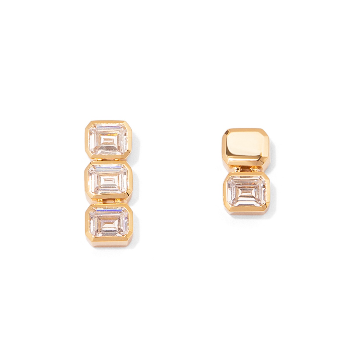 Unbalance Earrings strike a balance between artisanal restraint and contemporary edge. The pair fastens with a post-back closure and is decorated with elegantly cut N-dia stones while featuring a mismatched silhouette that elevates timeless sophistication with a modern twist.