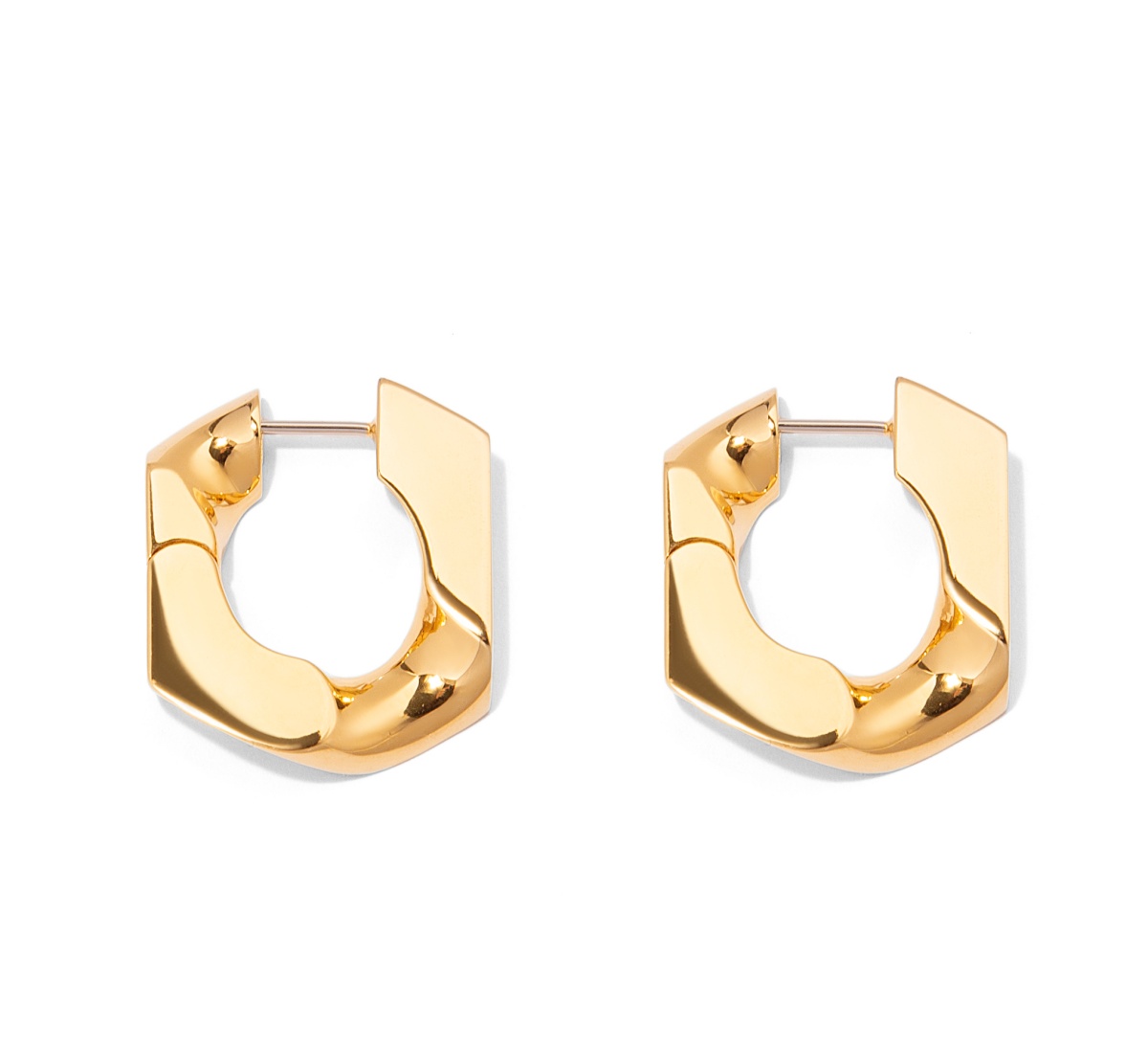 Gold Chain Earrings from Numbering aim to uplift any outfit with a contemporary edge. Meticulously crafted from 14k gold-plated brass, the piece fastens with a hinged post closure and features a polished chain-link inspired profile.