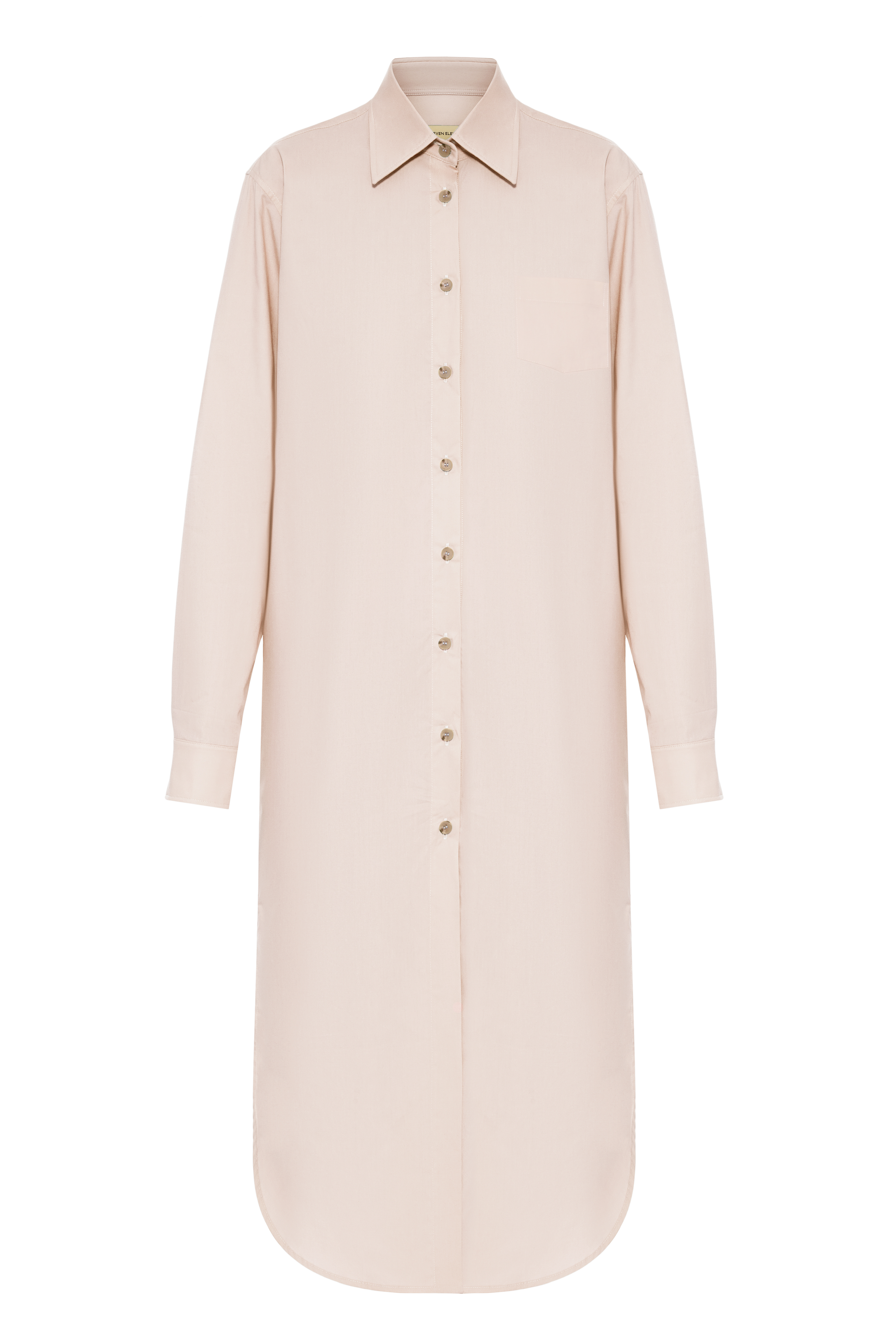 Whether looking for a chic swimsuit coverup or want to make a summer outfits a bit more dressier, Peach Longline Shirtdress from O'SEVEN ELEVEN has got you covered. Characterized by classic details such as a neat point collar and front button placket, the piece is as simplistic as it gets to utilize the idea of the button-down's universality.