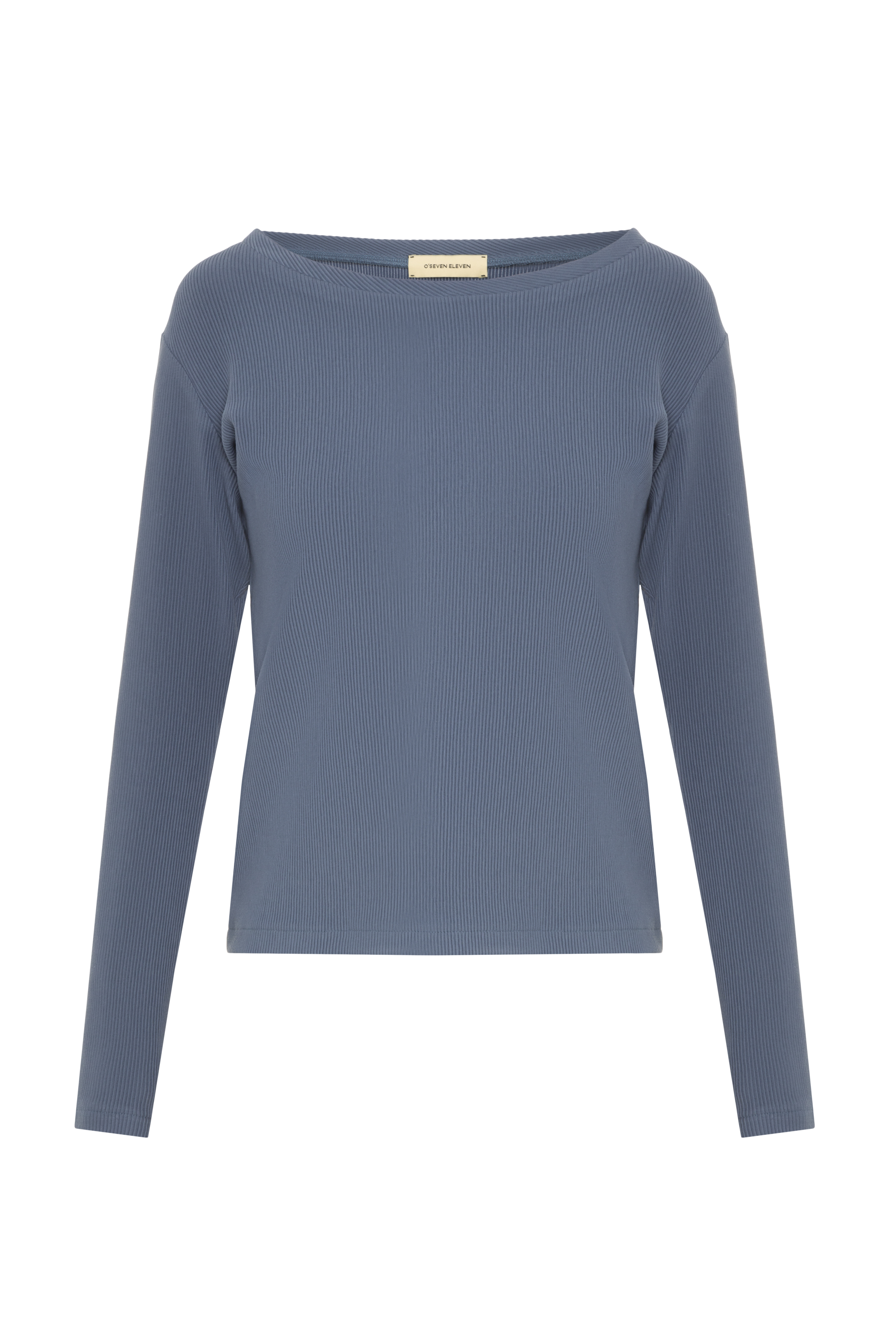The daytime piece with a polish, Blue Ribbed Shirt from O'SEVEN ELEVEN is rendered from rib-knit fabric that lends a textural finish to an otherwise laid-back silhouette. The top features a round neckline along with a slim fit and a long sleeve construction.