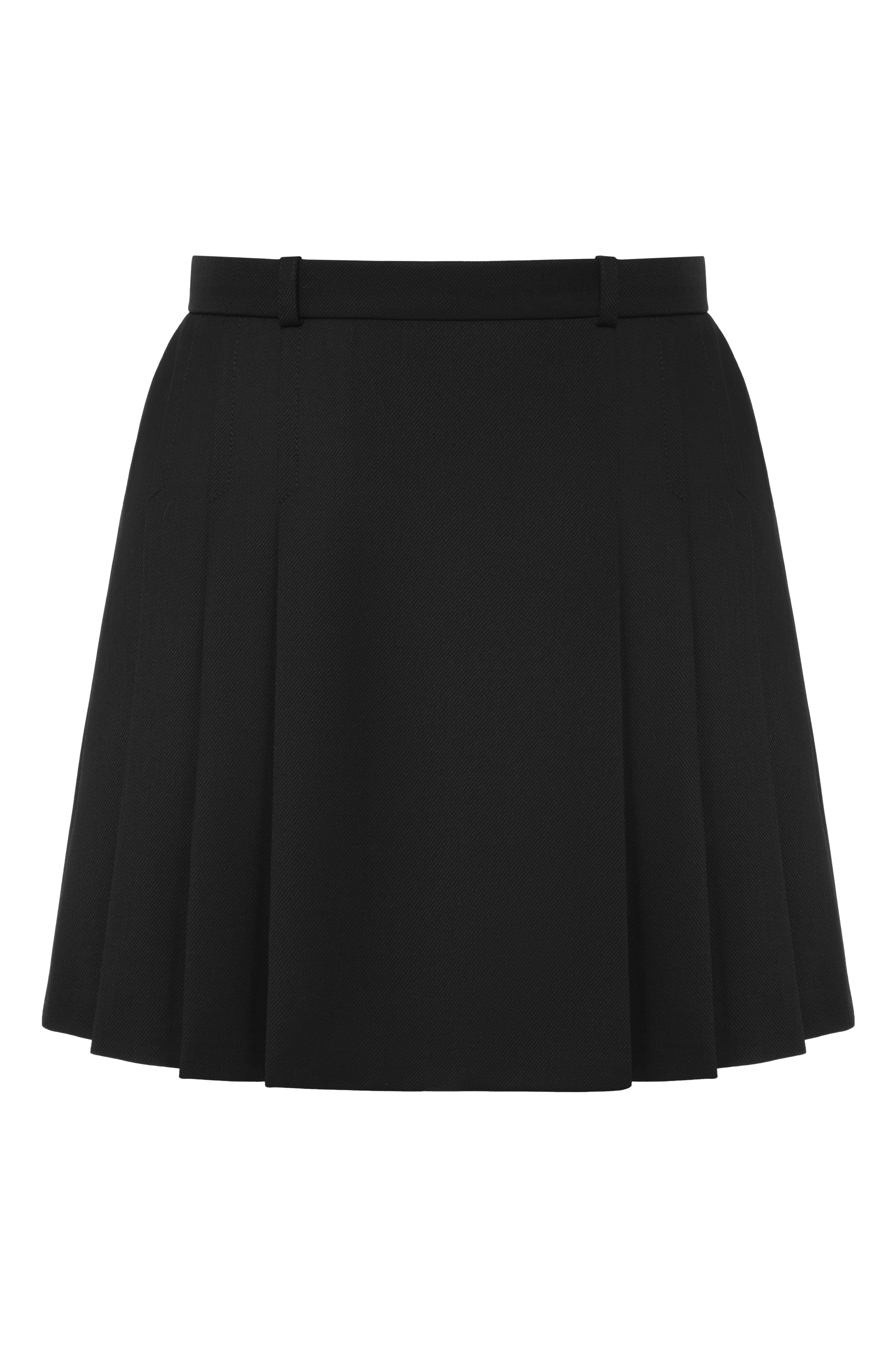 Black Mini Skirt from O'SEVEN ELEVEN stands out with uncomplicated elegance furtherly updated with a subtle playful touch. Reminiscent of a tennis skirt silhouette with a pleat-defined construction, the piece fastens with a couple of buttons and is rendered from Italian twill fabric to elevate sporty essence with a luxe spin.