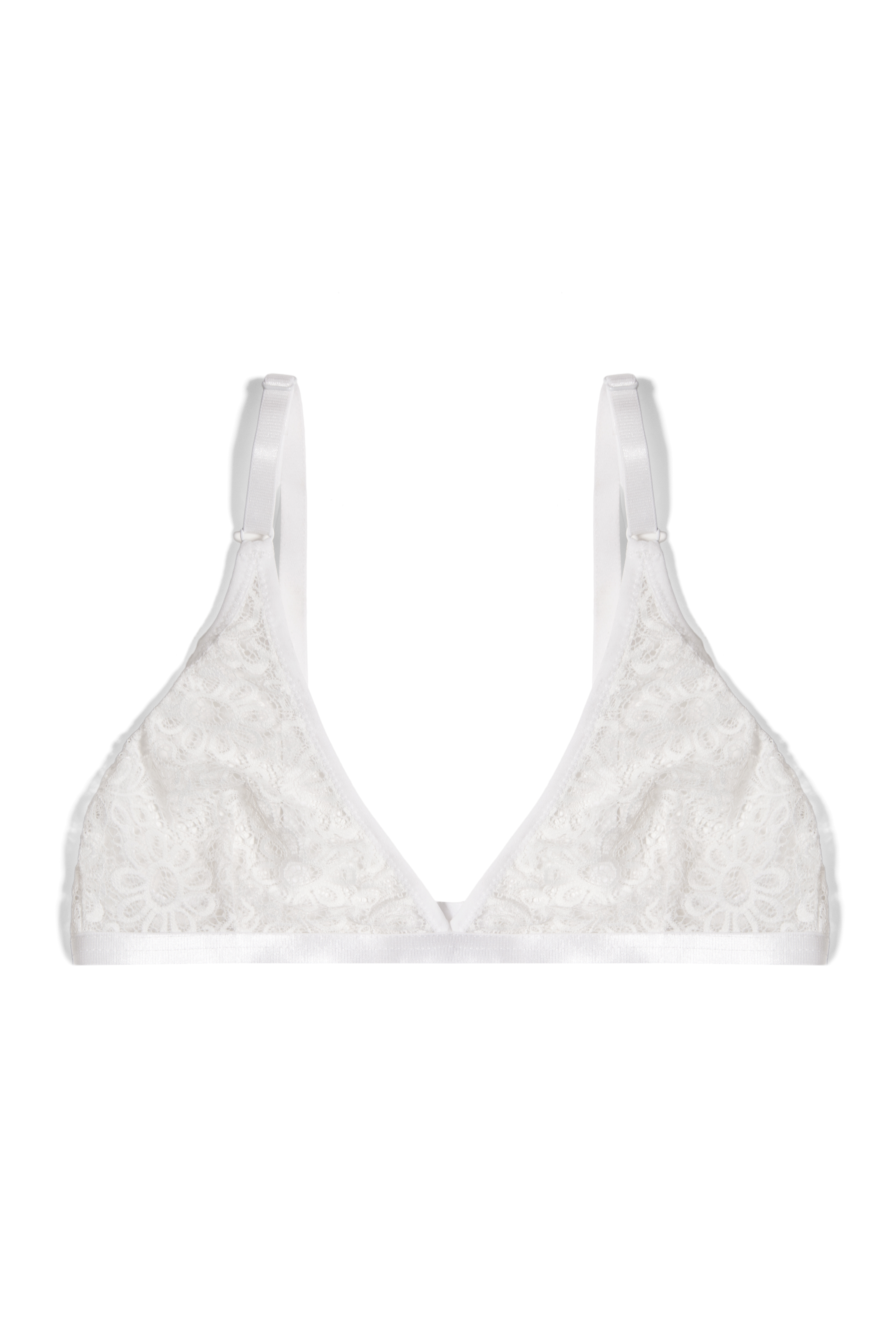 Infused with romance, White Lacey Bralette from Sheidish is imagined in delicate floral lace. Suspended with adjustable straps, this style has a classic hook closure for a perfect fit and wire-free silhouette, which underpins day-to-night looks with comfort.