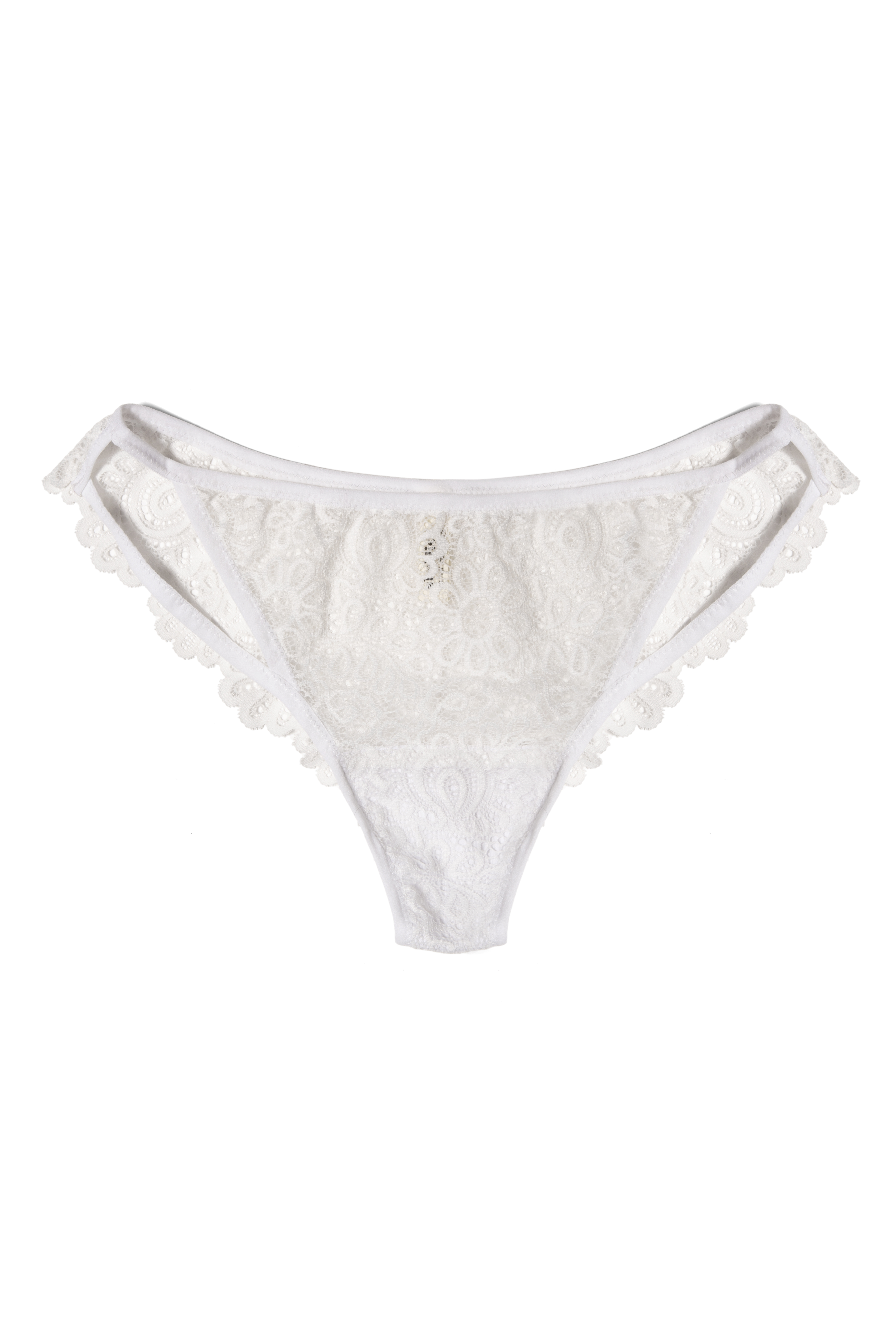 Founded with an ethos to update women's day-to-day with stylish yet conscious lingerie choices, Sheidish offers White Lacey Panties that are rendered from deadstock lace. Defined with a mid-rise profile, the design features fanciful scalloped hems for enhanced femininity.