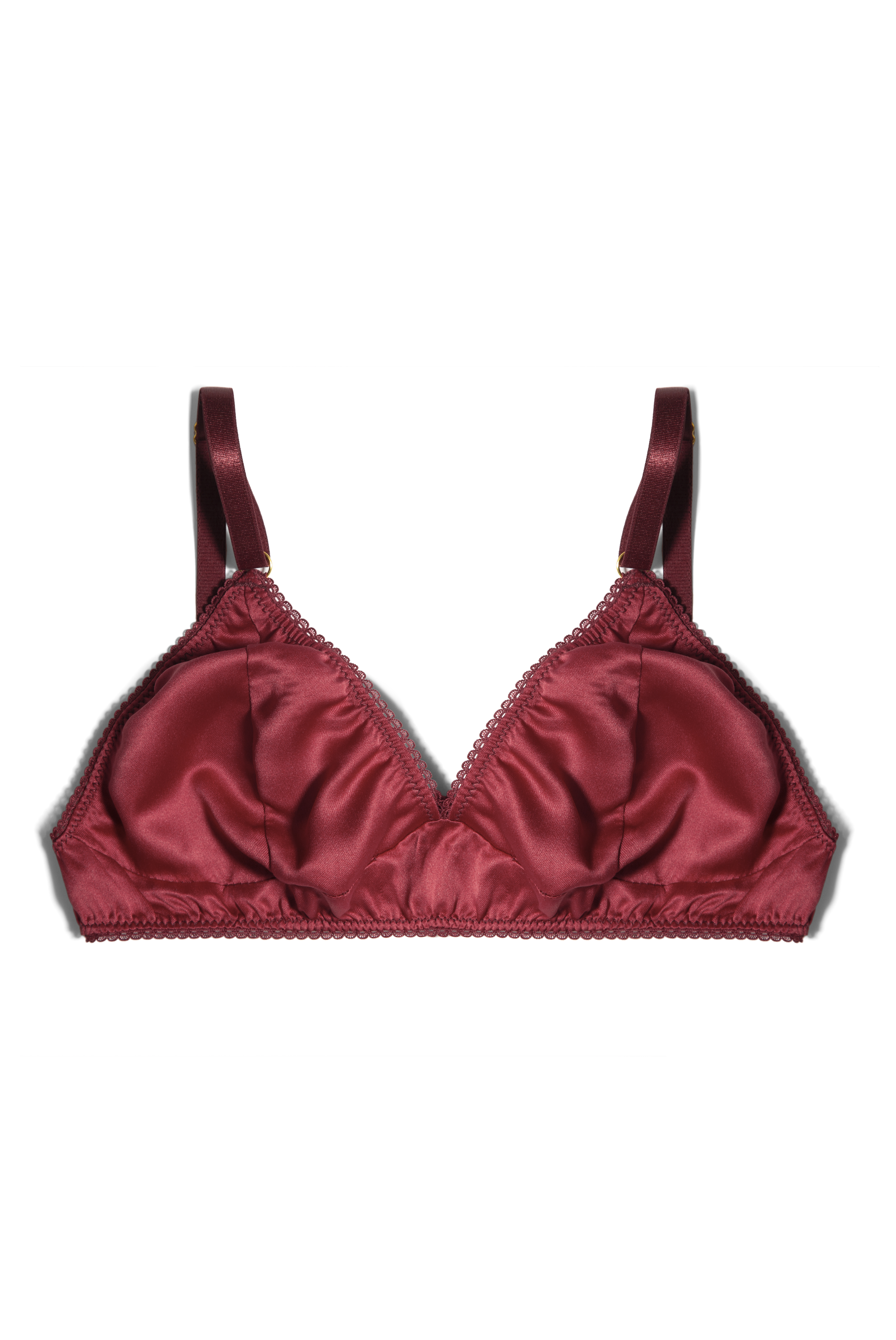 Founded with an ethos to update women's day-to-day with stylish yet conscious lingerie choices, Sheidish offers Burgundy Triangle Bralette that is rendered from deadstock fabric. Imagined in lace-trimmed fluid satin to provide featherlight feel and a flattering look, the style features a classic hook closure and a wire-free silhouette to underpin day-to-night looks with comfort.