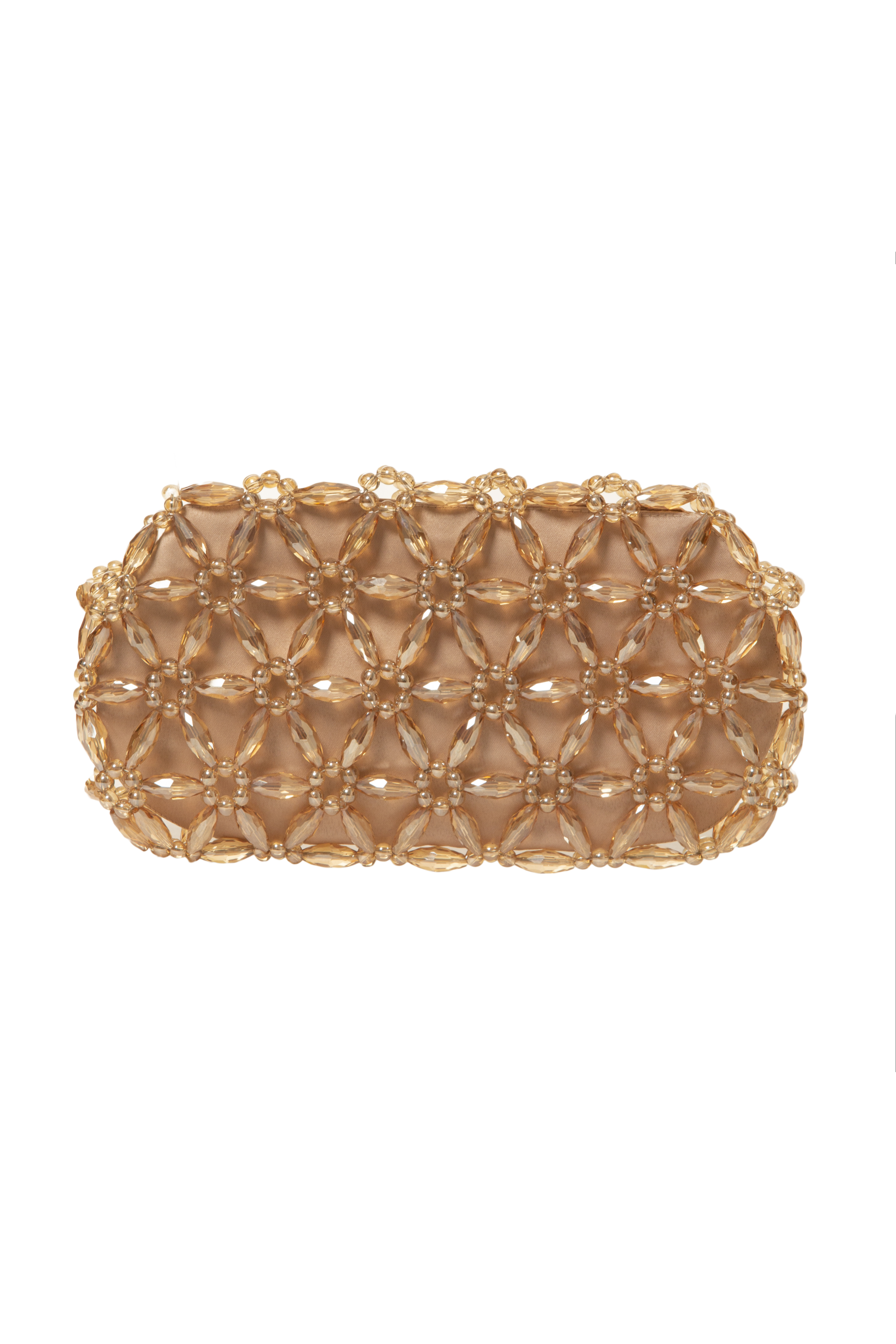 With a daisy-like weaving technique, 0711 Tbilisi's Champagne Tebea Clutch radiates immense femininity. Hand-assembled with dazzling glass beads into an oval shape, the bag features a magnet-fastened inner satin pouch to keep all the evening essentials secure.