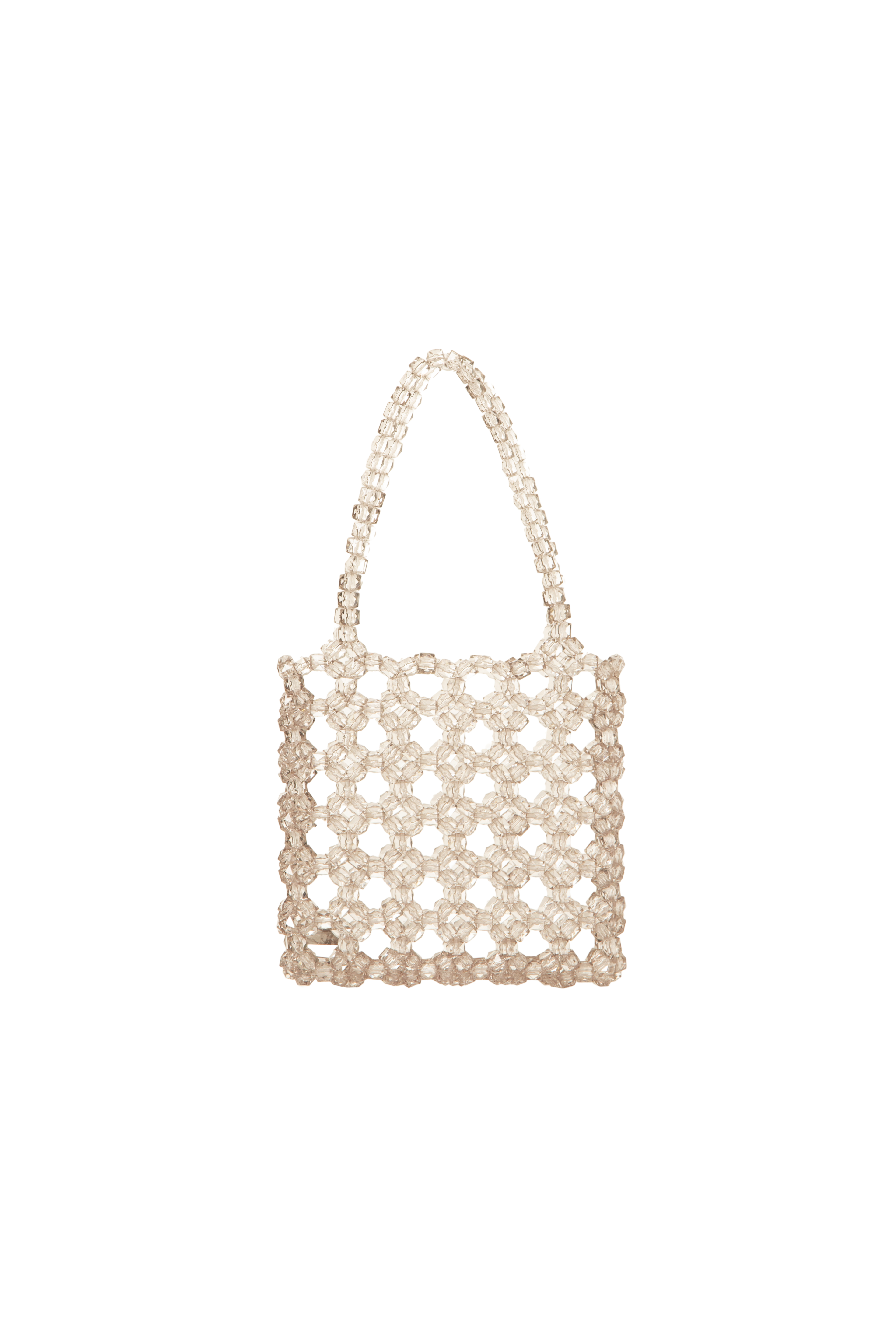 0711 Tbilisi's Rain Dotty Bag showcases the elaborate beadwork that is a hallmark of the label's designs. Intricately hand woven into an openwork petite silhouette, the piece is accentuated by a rose gold plated logo tab and features an open top along with the pair of top handles.
