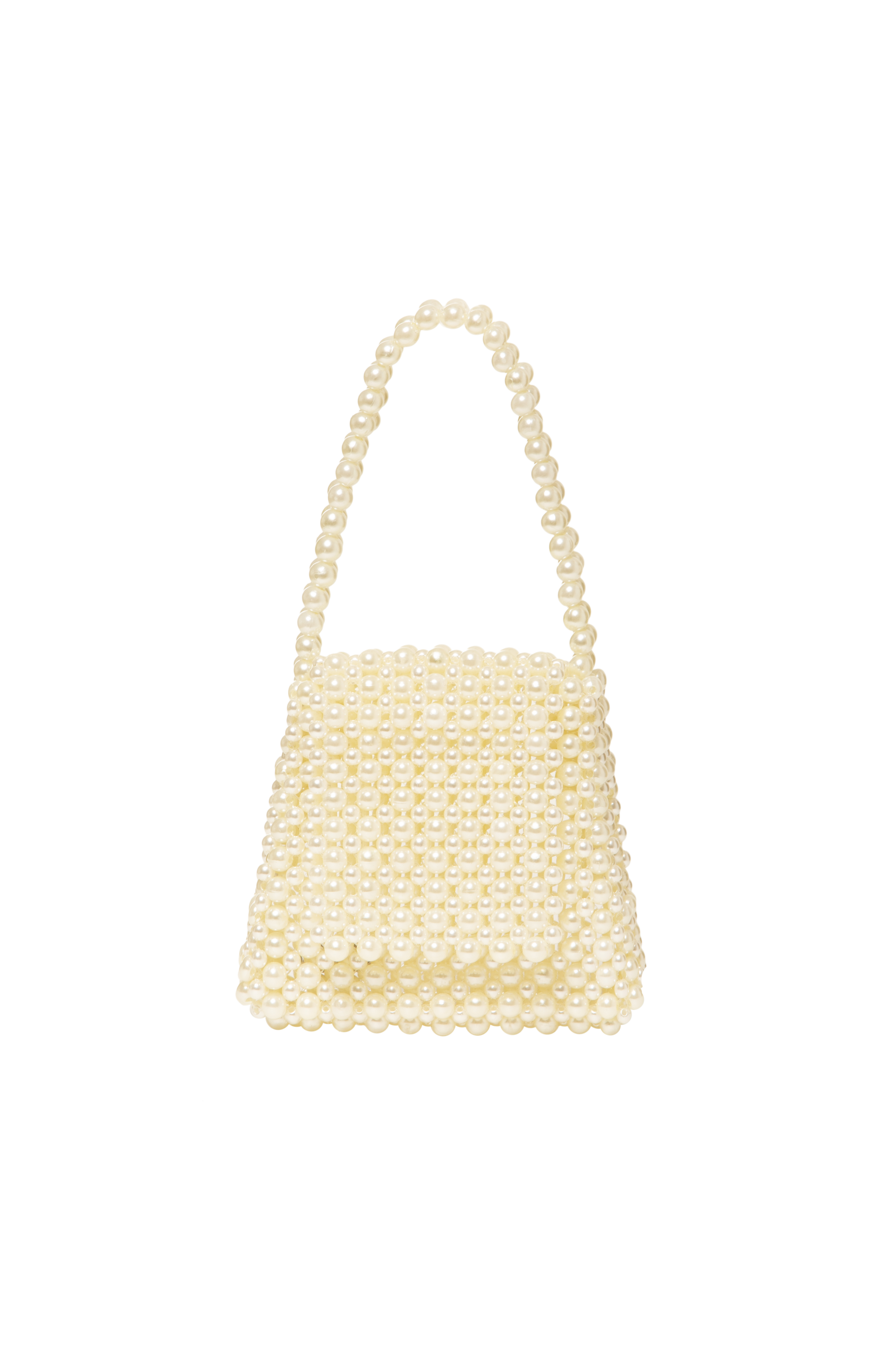 0711 Tbilisi's Ivory Lilly Bag showcases the elaborate beadwork that is a hallmark of the label's designs. Intricately hand woven into a delightfully petite silhouette, the piece is accentuated by a rose gold plated logo tab and features a flap closure along with the top handle.