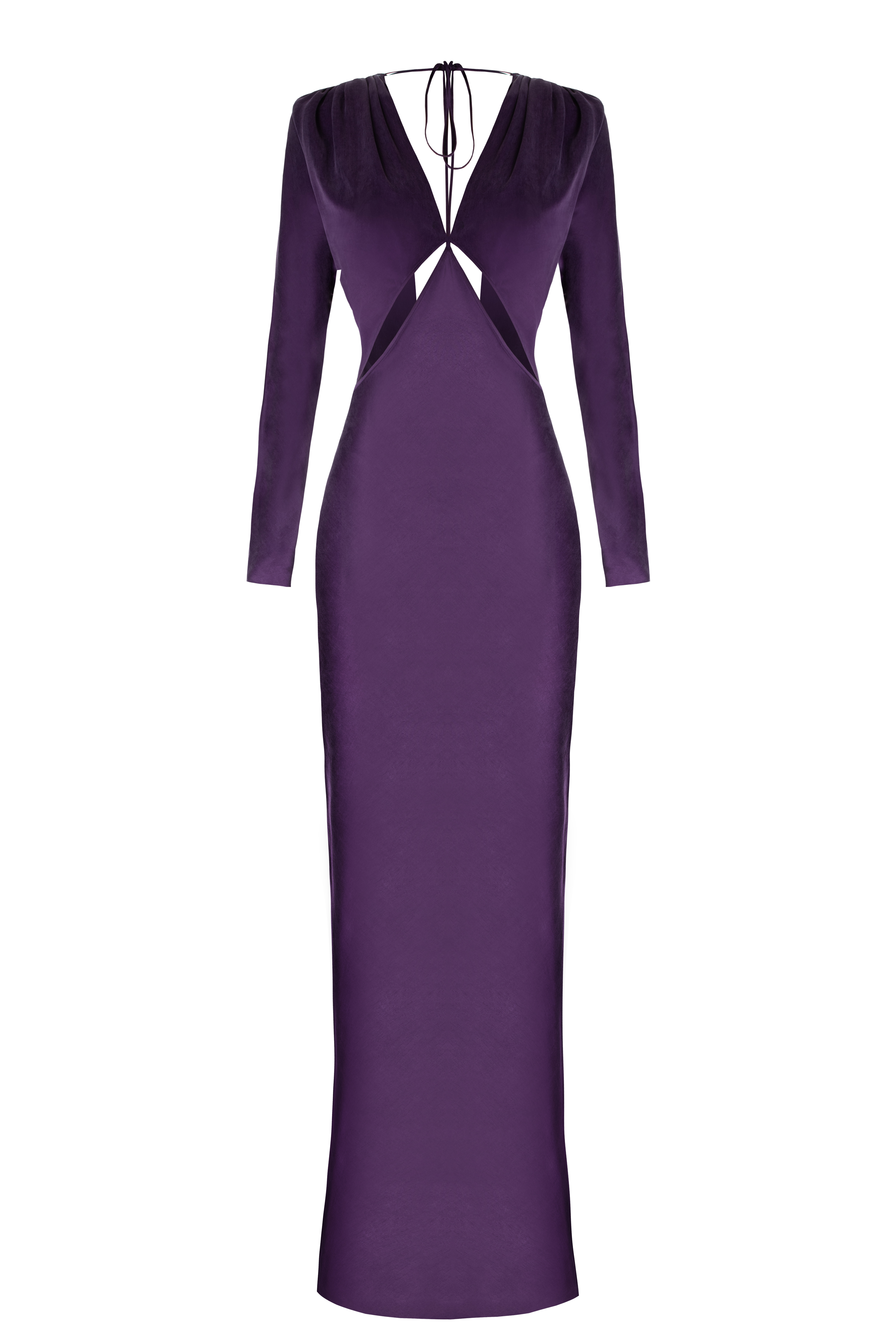 For Fall/Winter 2023, Aleksandre Akhalkatsishvili returns with a multitude of updates to his hyper-cool, effortless sensuality. One of the notable pieces is the Purple Maxi Dress - detailed with sultry cutouts and tie fastenings. The bodice of the piece is cut for a slightly loose fit to create a voluminous draped silhouette while the bottom part is more snug, featuring a showstopping long train for a dramatic touch.