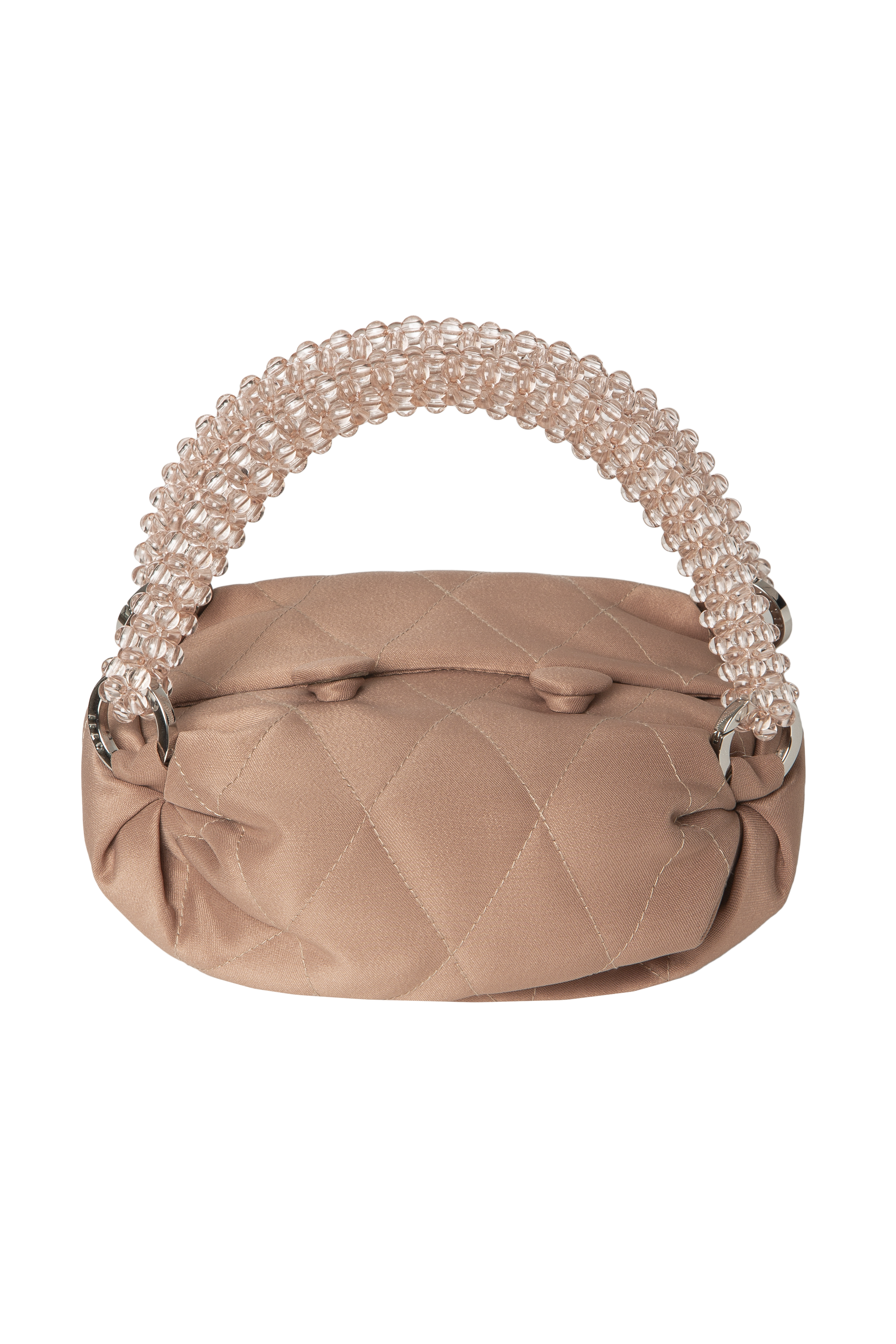 Signature of 0711 Tbilisi, Tiny Nino is a unique offering that puts a fresh twist on occasion wear accessories. Crafted from fluid satin into an artfully folded silhouette, the piece is elevated with beaded top handles and features button closure along with the fully lined interior.