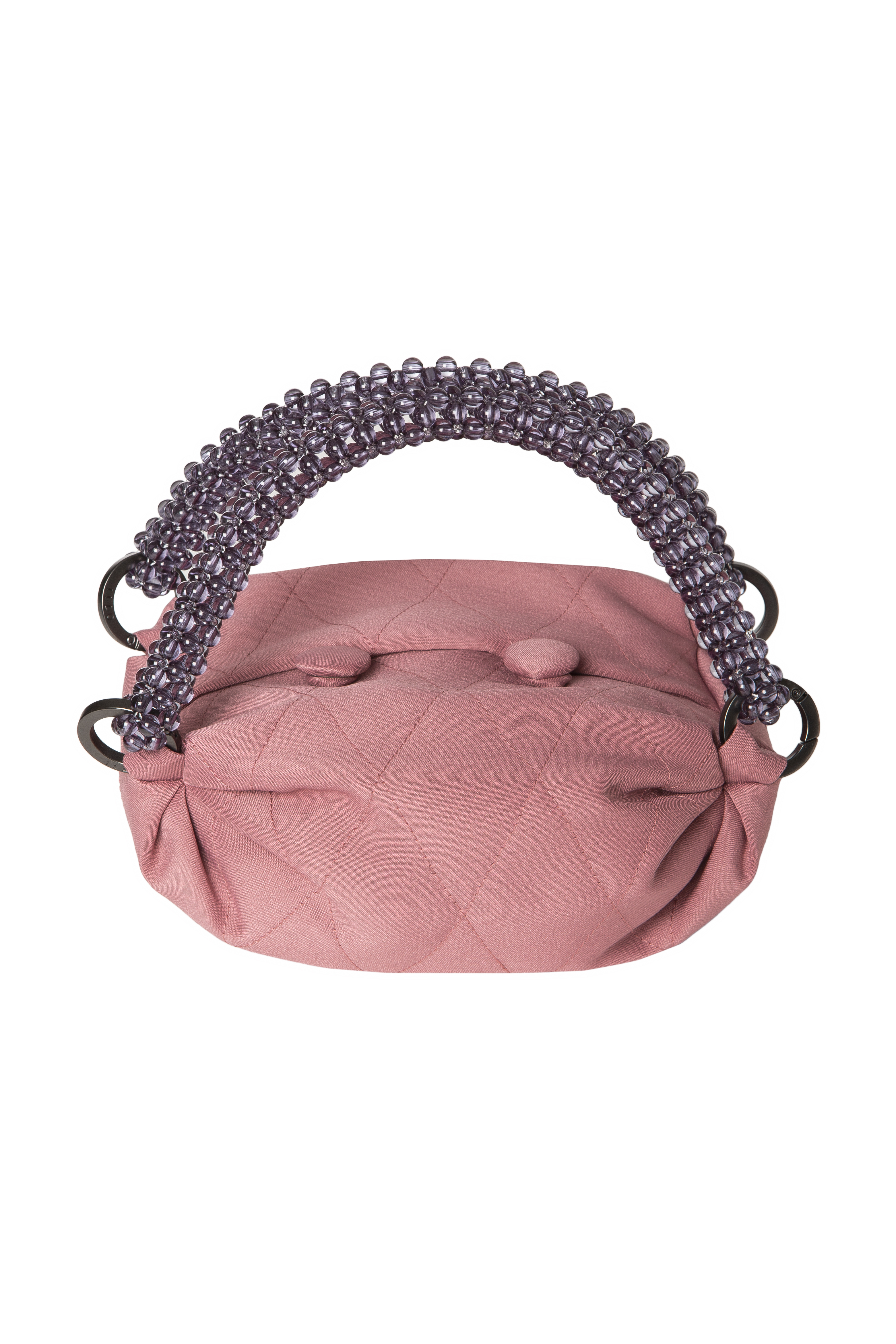 Signature of 0711 Tbilisi, Tiny Nino is a unique offering that puts a fresh twist on occasion wear accessories. Crafted from fluid satin into an artfully folded silhouette, the piece is elevated with beaded top handles and features button closure along with the fully lined interior.