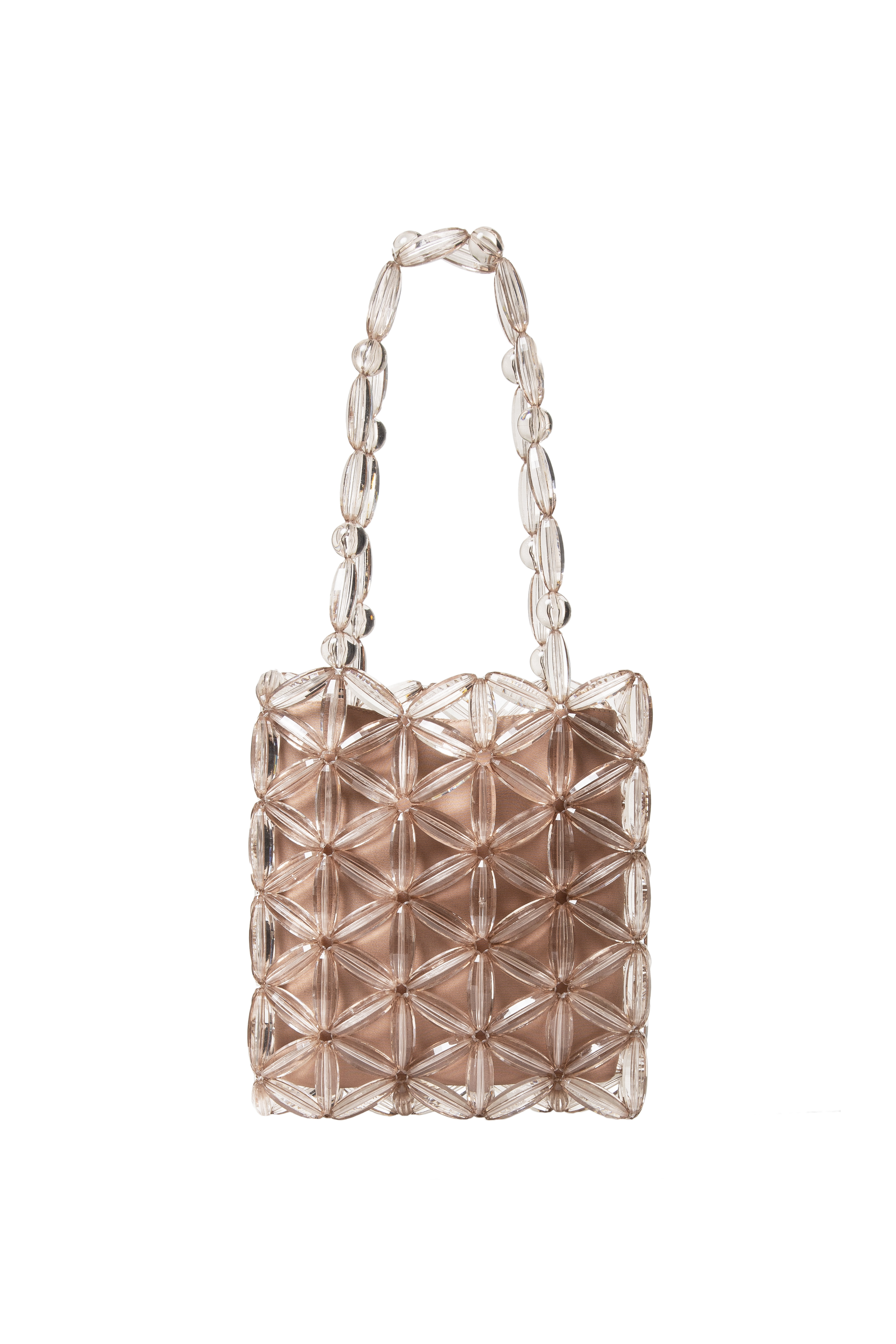 To lend edit of any choice a gleeful spin, 0711 Tbilisi's Rose Mia Tote is handwoven into a pattern that reminiscences daisies. The structured profile of the piece comes offset by a fluid satin inner pouch that fastens with a magnet, while a pair of top handles ensure that the bag slings comfortably over the crook of an arm.