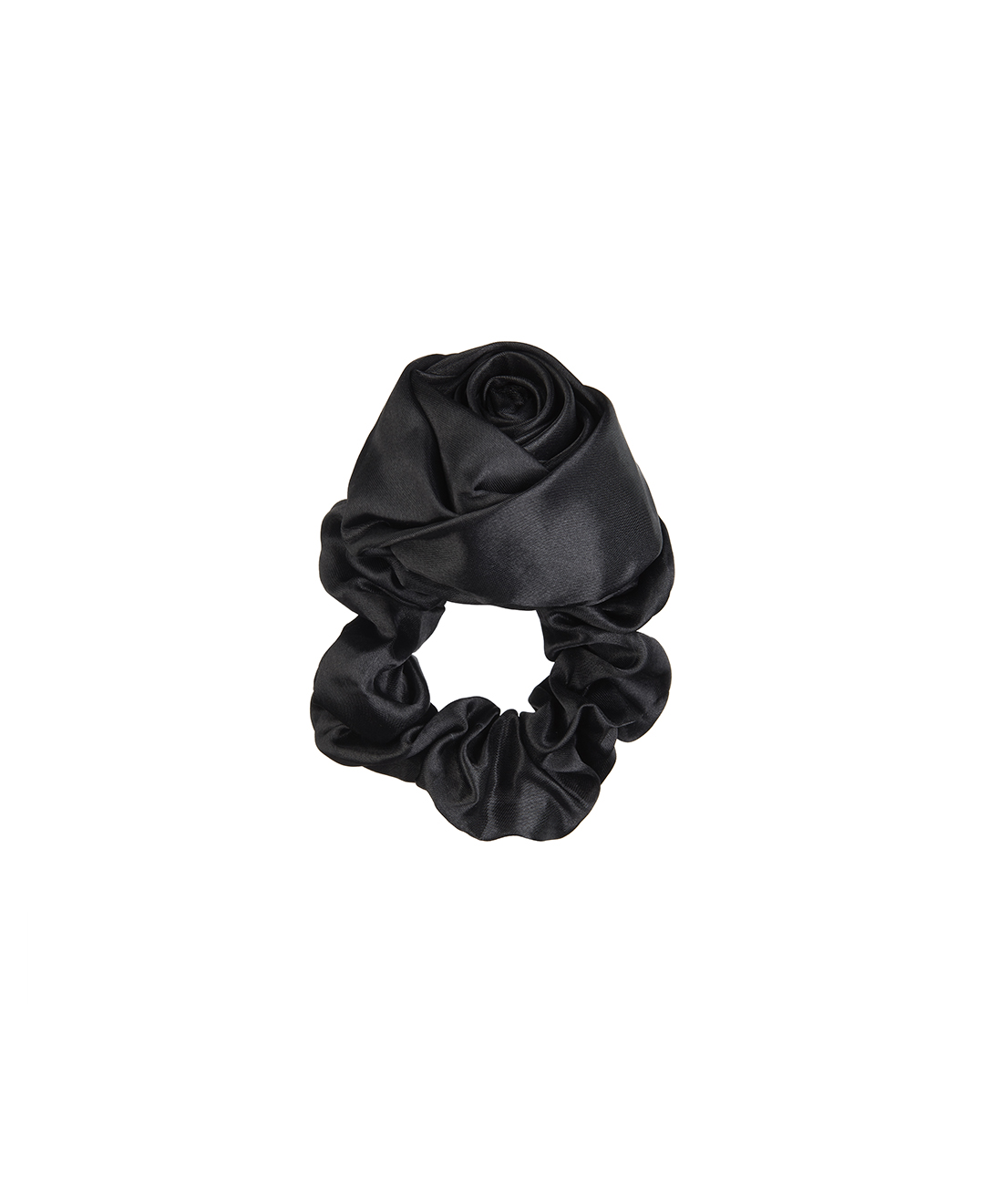 Exuding a playful energy Salt & Wave is distinguished for, Black Scrunchie is a perfect option to add a romantic twist to the simplest of outfits. An ode to 90s, the brand's main source of inspiration, the piece crafted from fluid silk and then adorned with an oversized rose motif for enhanced femininity.