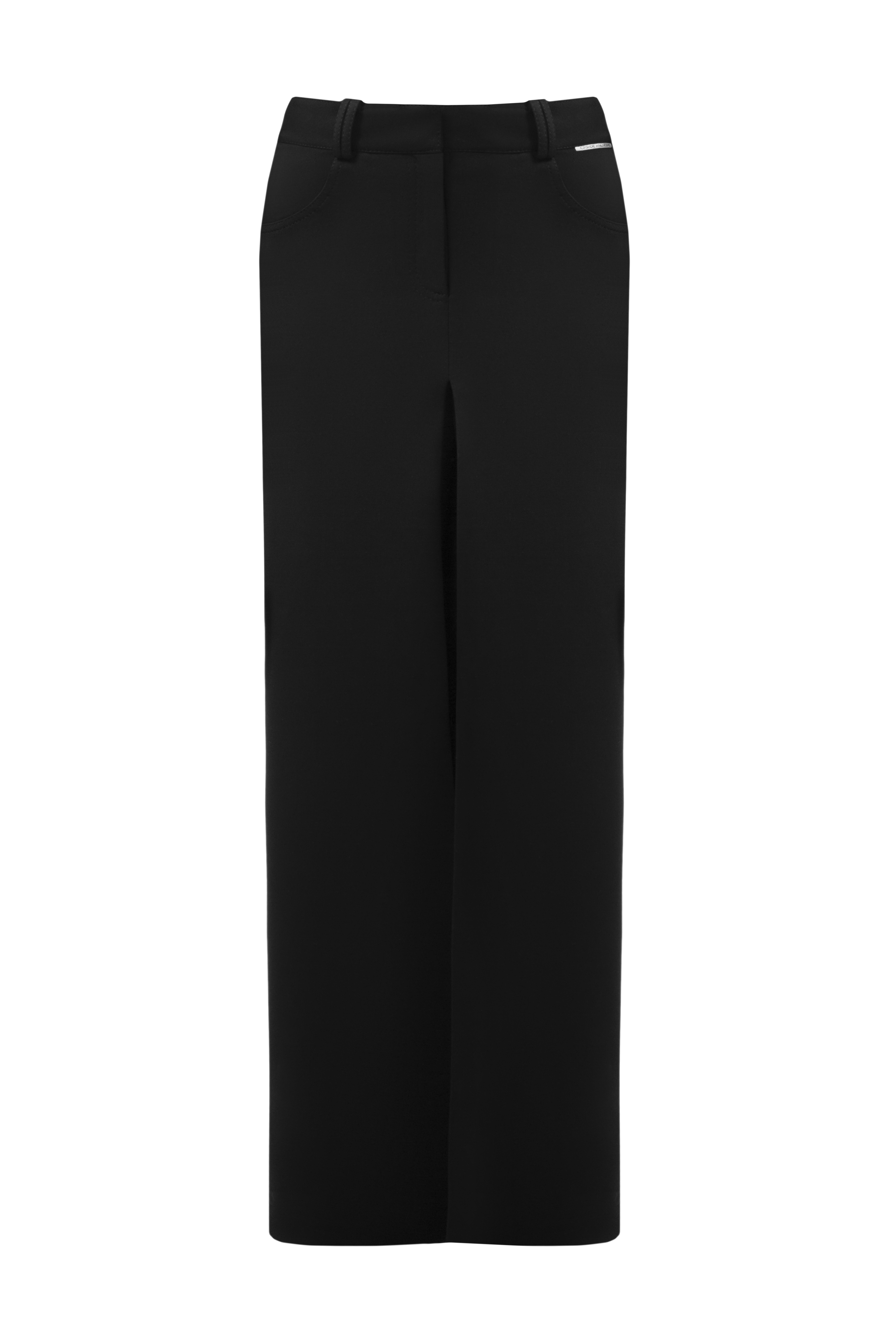 Aleksandre Akhalkatsishvili has a penchant for presenting simple and well-worn silhouettes with a unique twist. This is perfectly exemplified by the Black Maxi Skirt, which features an array of individual pointed panels. The piece sits at a mid-rise waistline, offering a maxi length. It includes a zip fly closure and a front slit for ease of movement, making it both stylish and practical.