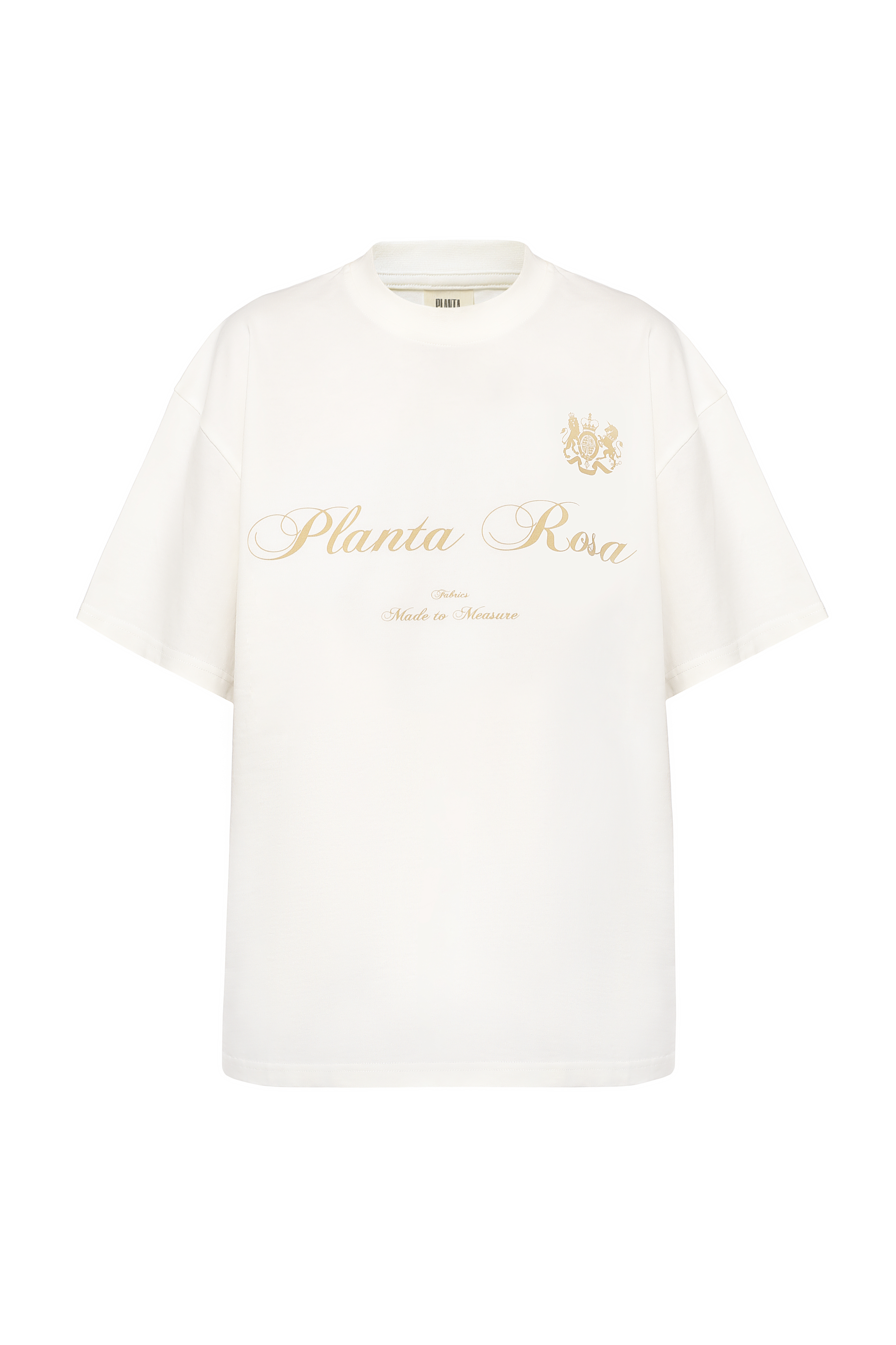 Established with an ethos to resurrect beloved vintage silhouettes, Planta Rosa offers a considered selection of retro profiles with a contemporary spin. A part of the above-mentioned selection, Vanilla T-Shirt Features a classic crew neck design and short sleeves. Cut for an oversized fit, the piece is animated with a contrast logo print while its soft, almost velvety cotton fabrication intends to ensure a comforting feel.