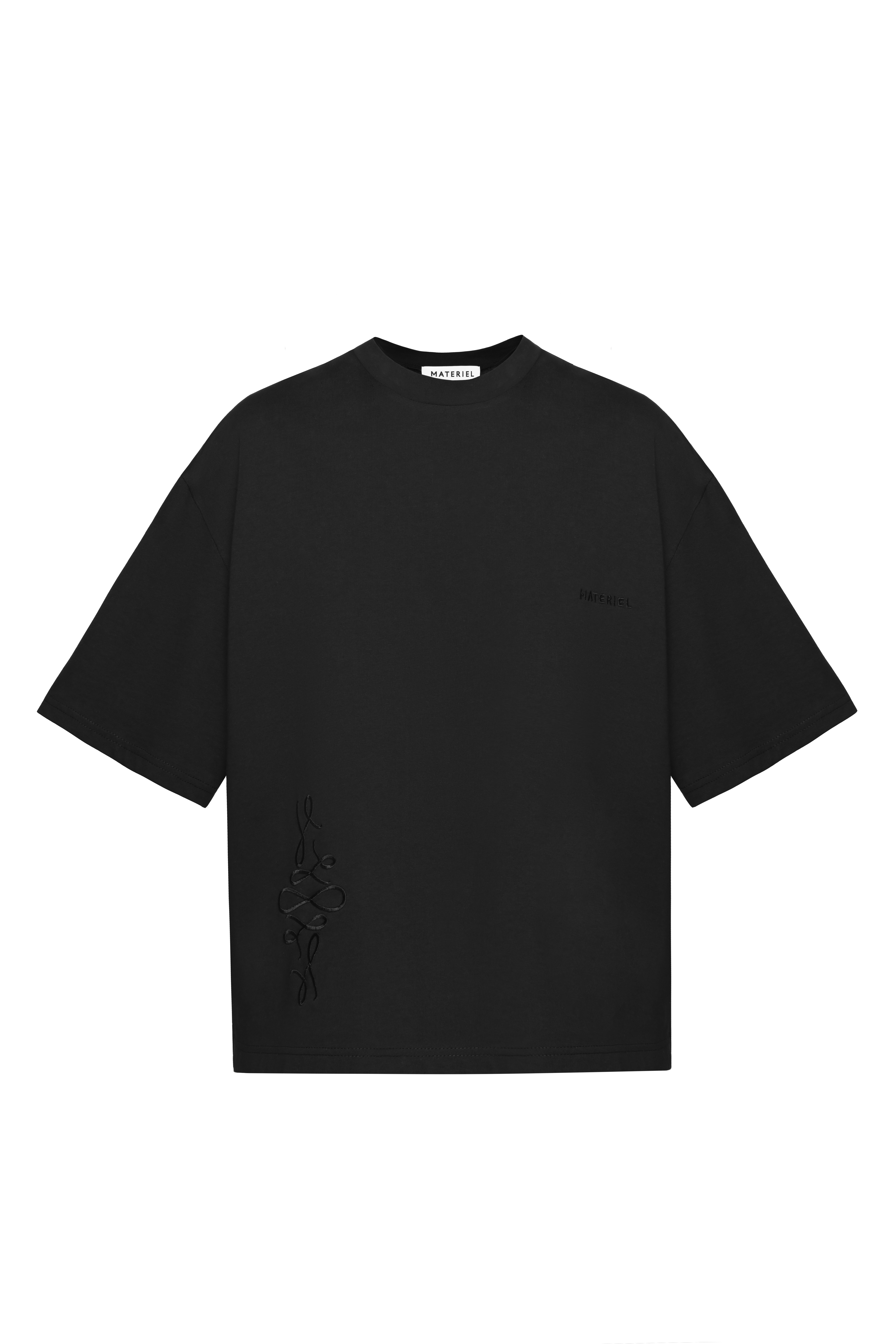 An addition to Materiel's daywear vocabulary, the Black T-shirt is cut from a soft-to-touch organic cotton to draw on the label's dedication to sustainable ethos. Featuring a boxy, relaxed silhouette and a crew neckline, the simplistic design of the piece is furtherly elevated with a tonal tribal motif embroidery on the side.