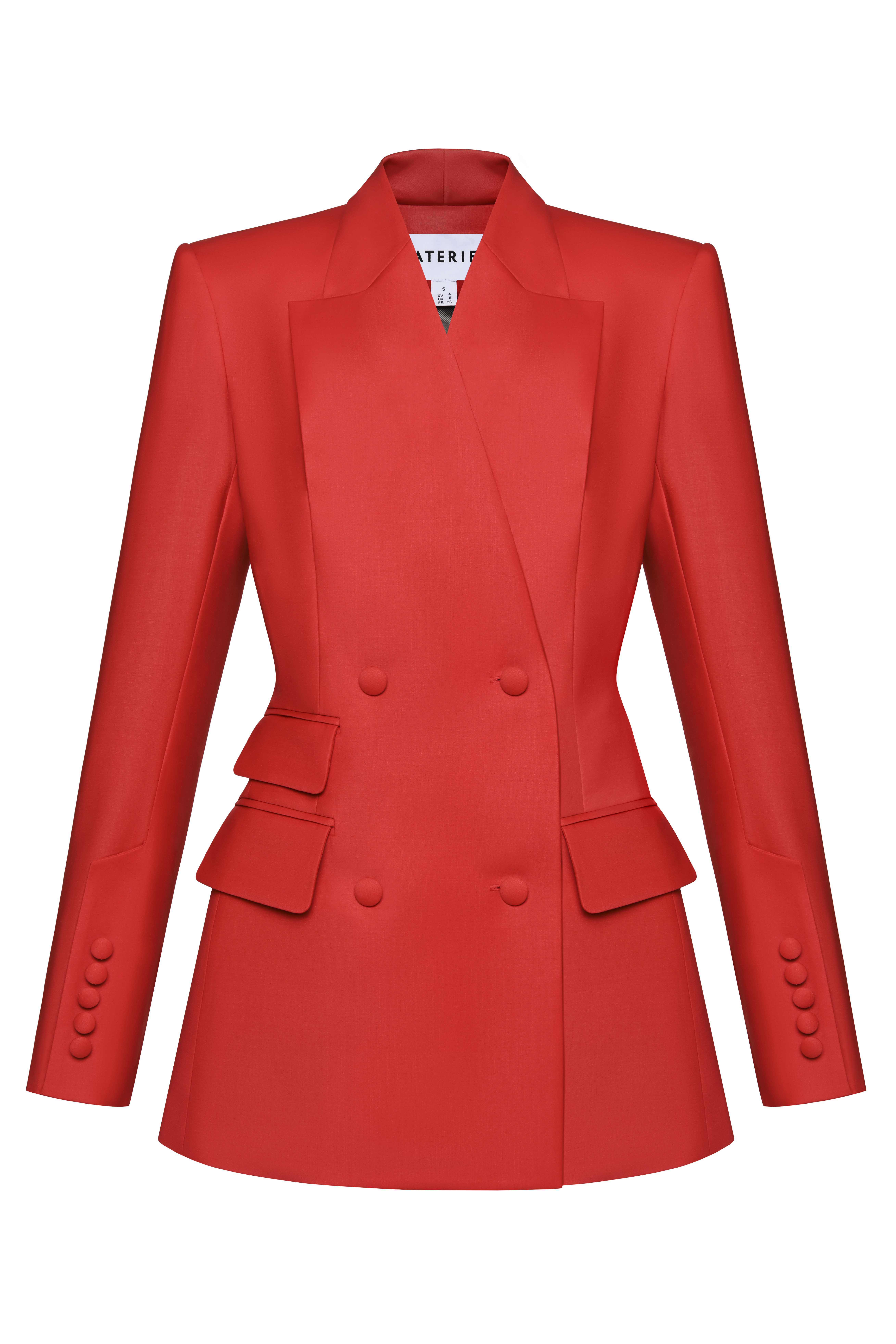 This Red Tailored Blazer from Materiel is a stylish and sustainable choice, crafted from recycled wool. Its double-breasted design features wide lapels and button decorations on the sleeves, adding a touch of sophistication. Functional front pockets offer practicality, while the button detail on the back of the neck adds a unique flair. With a slitted back for ease of movement and a lining for comfort, this blazer combines elegance and functionality perfectly.