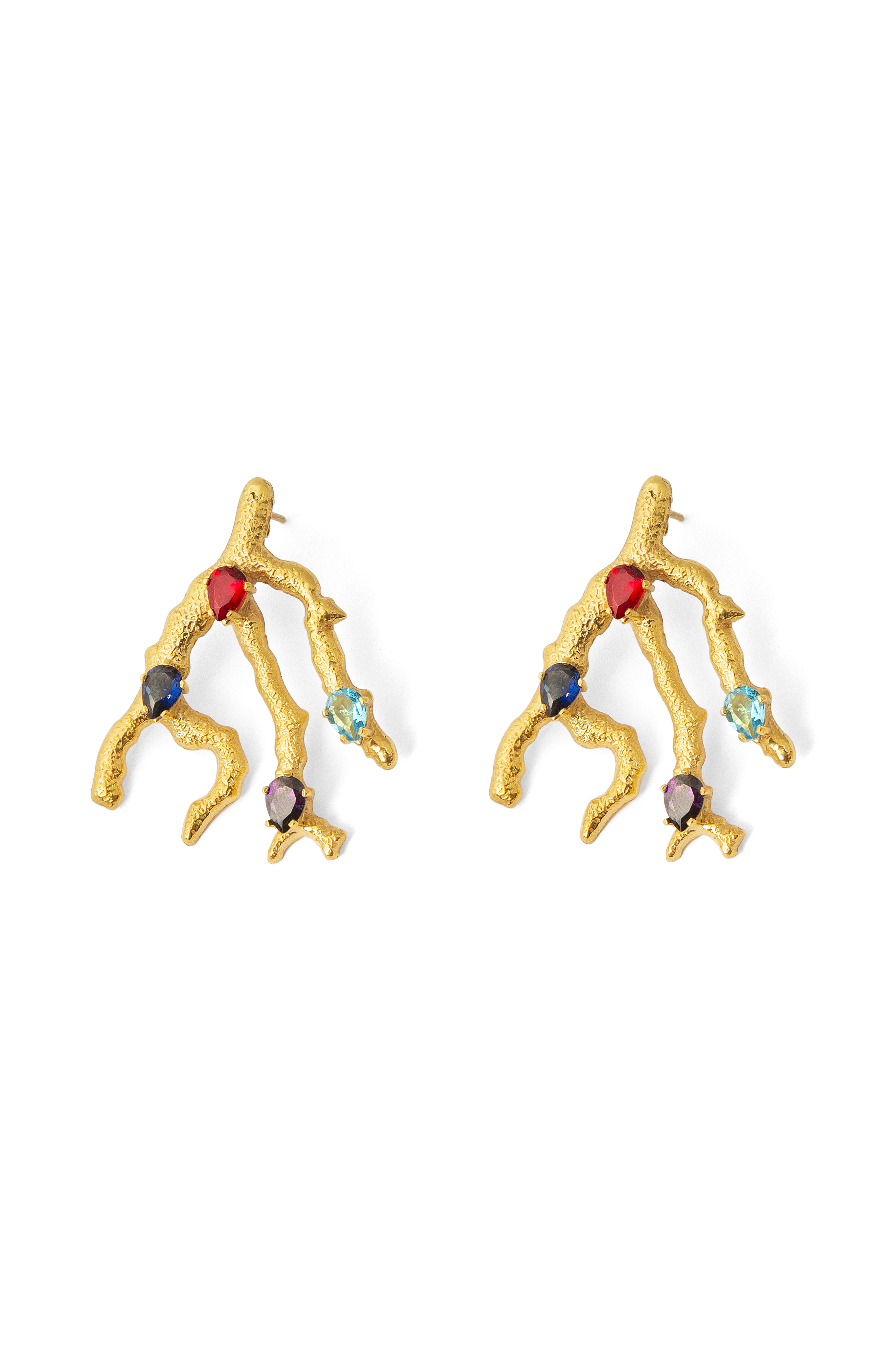 Add a touch of elegance with the Nassimoto Maria Earrings, featuring a striking gold-plated silver design shaped like delicate branches. Adorned with sparkling stones, these earrings bring a refined yet natural charm to any look. They come with a secure push-back fastening, ensuring both comfort and style.