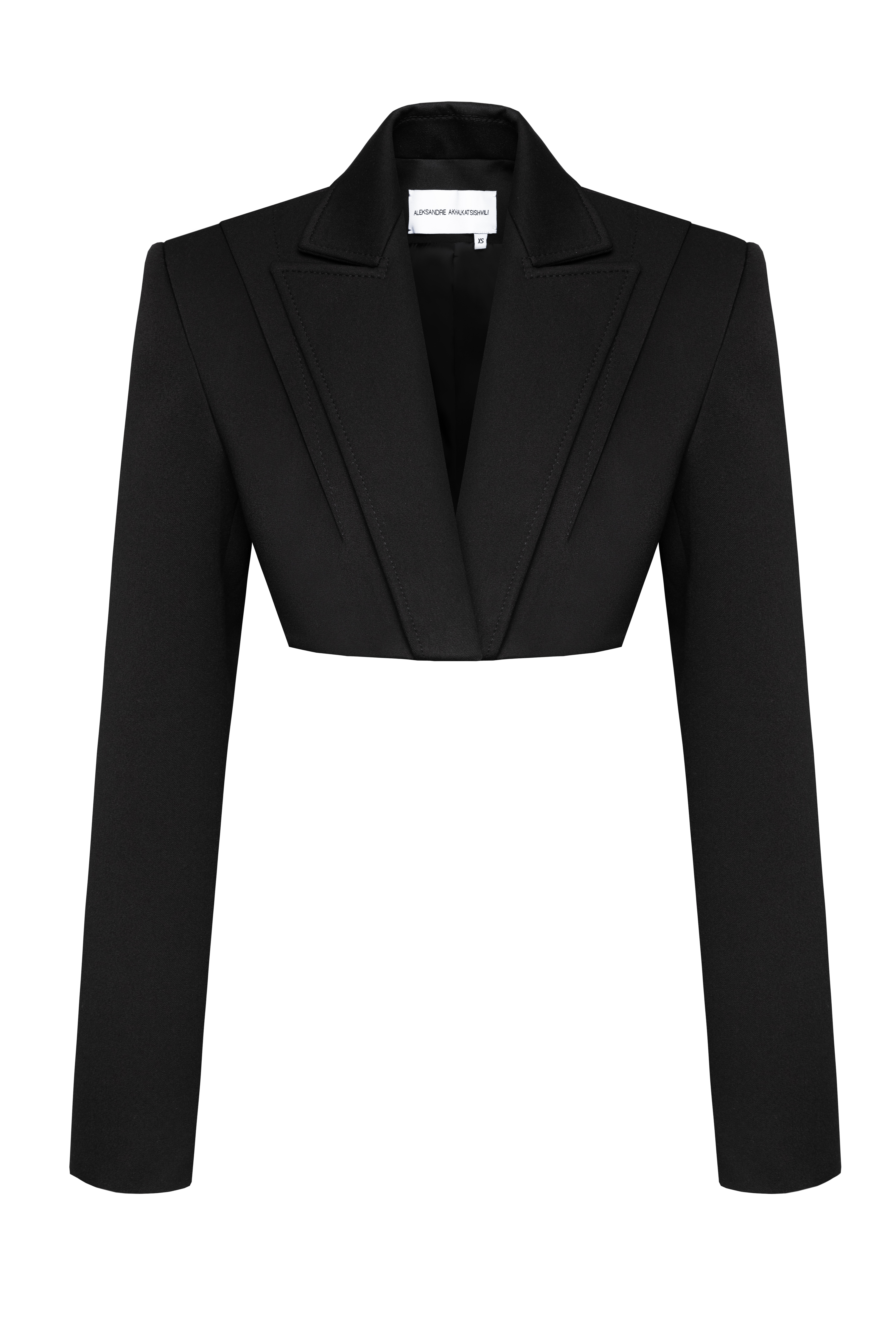 This crop fit blazer from Aleksandre Akhalkatsishvili offers a sophisticated edge to any wardrobe. The design features padded shoulders that provide a strong, structured silhouette, while the long sleeves with buttoned cuffs add a refined touch. Double front lapels enhance the blazer's classic appeal, making it a versatile piece that seamlessly transitions from day to night.