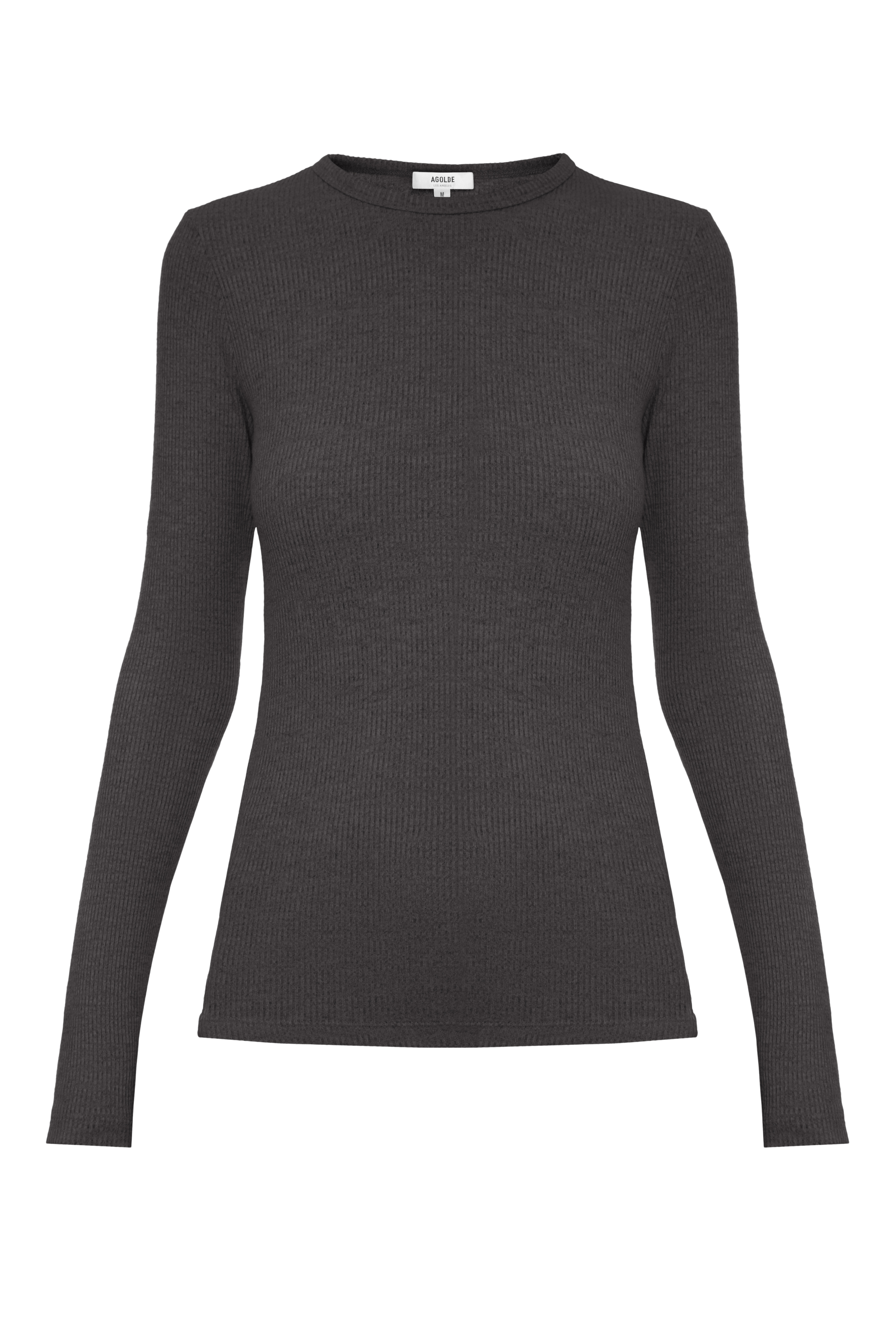 Specialising in everyday denim garments, Agolde widens its repertoire and offers Dark Grey Long Sleeve Top - a must-have for autumnal edits. The piece perfectly demonstrates brand’s comfort-driven mindset and features round neckline and slim fit alongside ribbed knit profile, which slouches up a little bit for extra coziness and comfort.