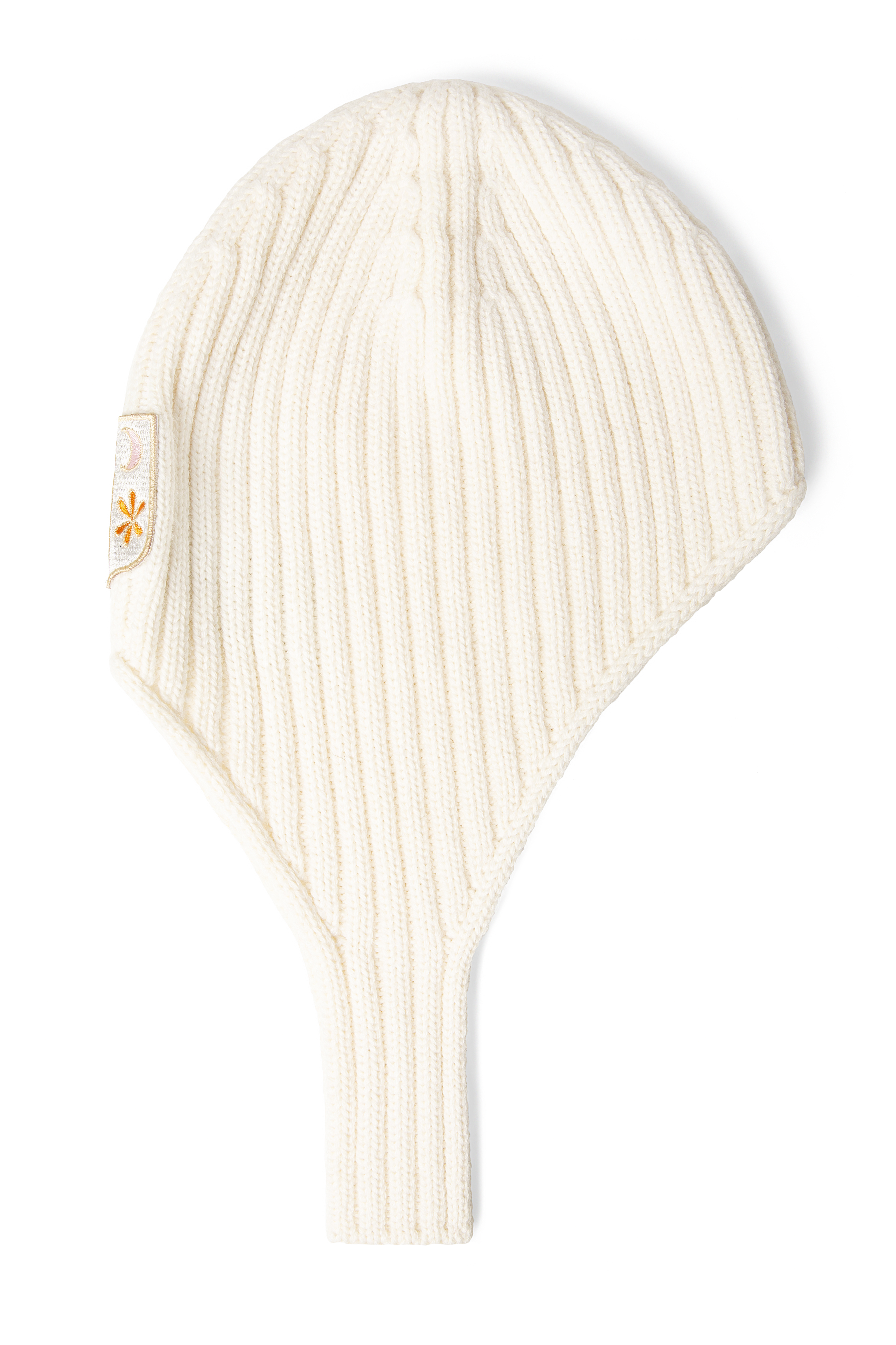 A refined take on a cold-weather essential, this white knit trapper hat from Muzaradi is crafted for both warmth and style. The understated signature logo at the back adds a subtle touch of branding, while the soft, cosy knit ensures comfort.