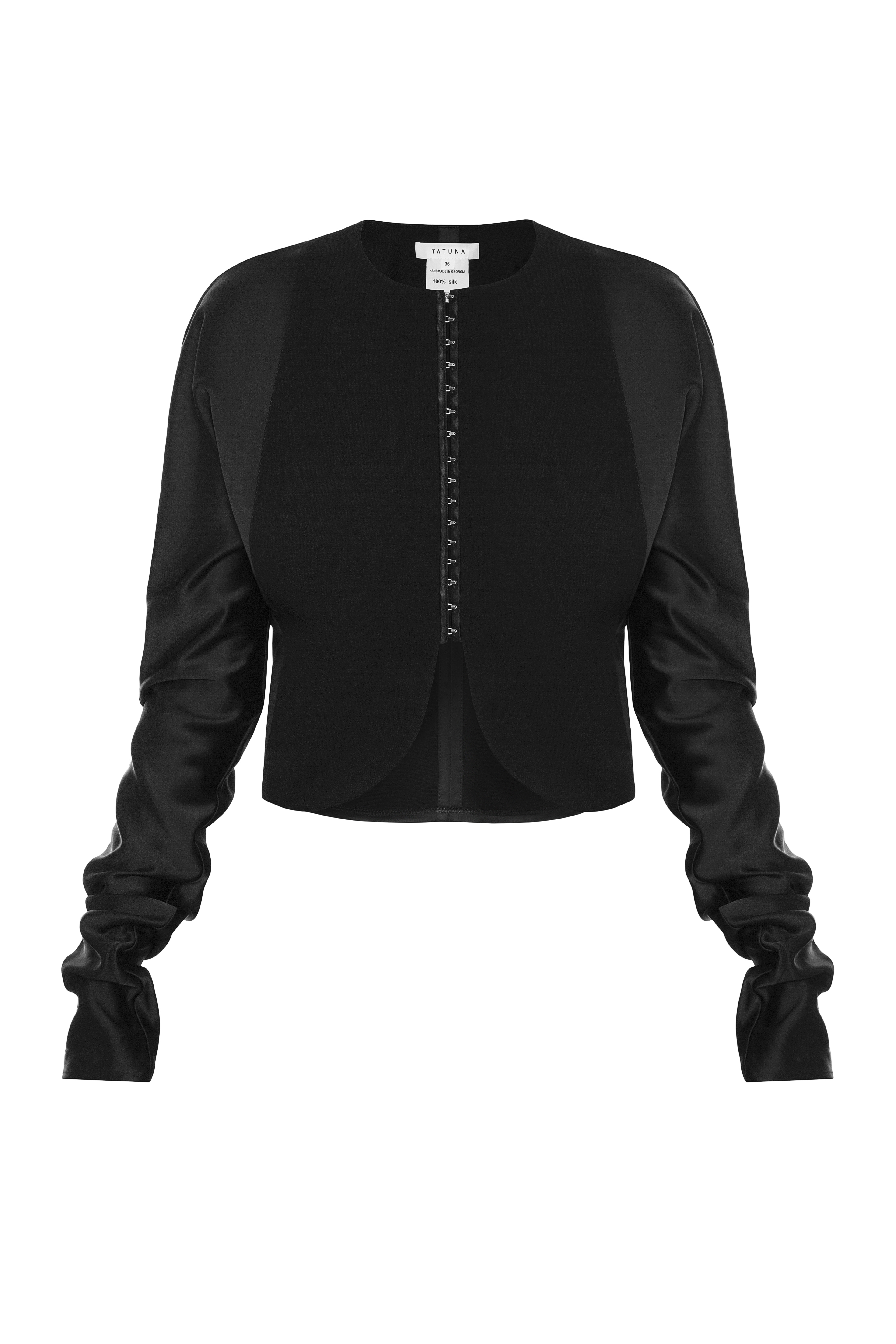 Tatuna was established with an ethos to create sleek and timeless wardrobe essentials, such as unlined Black Blouse. The piece features long silk sleeves, hook fastenings at the front and cropped hem.