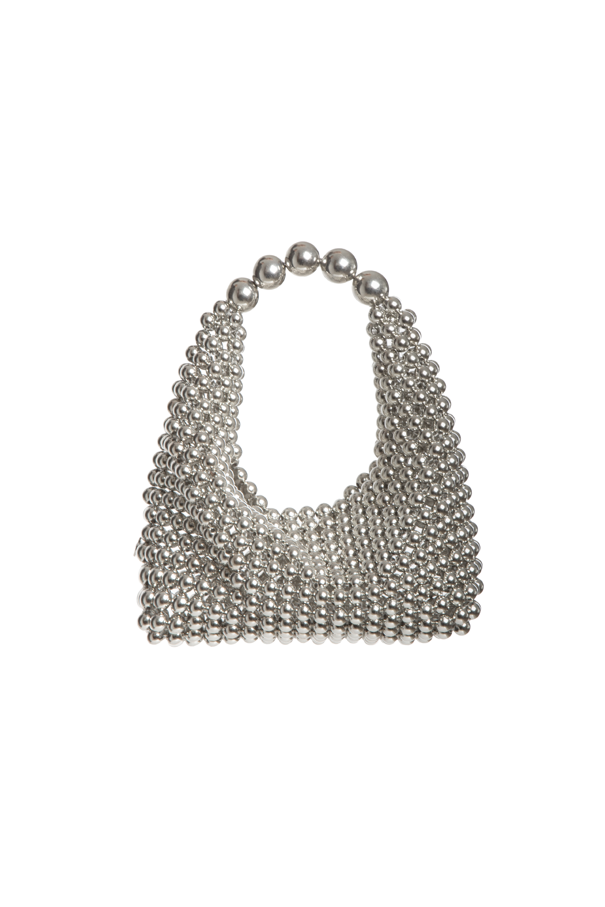 Slouchy yet structured, 0711 Tbilisi's Silver Jodie Small Bag sways between contrasting sensations. Handmade by local artisans, the piece is defined with an open-top silhouette that is put together with a maxi bead detailed handle.