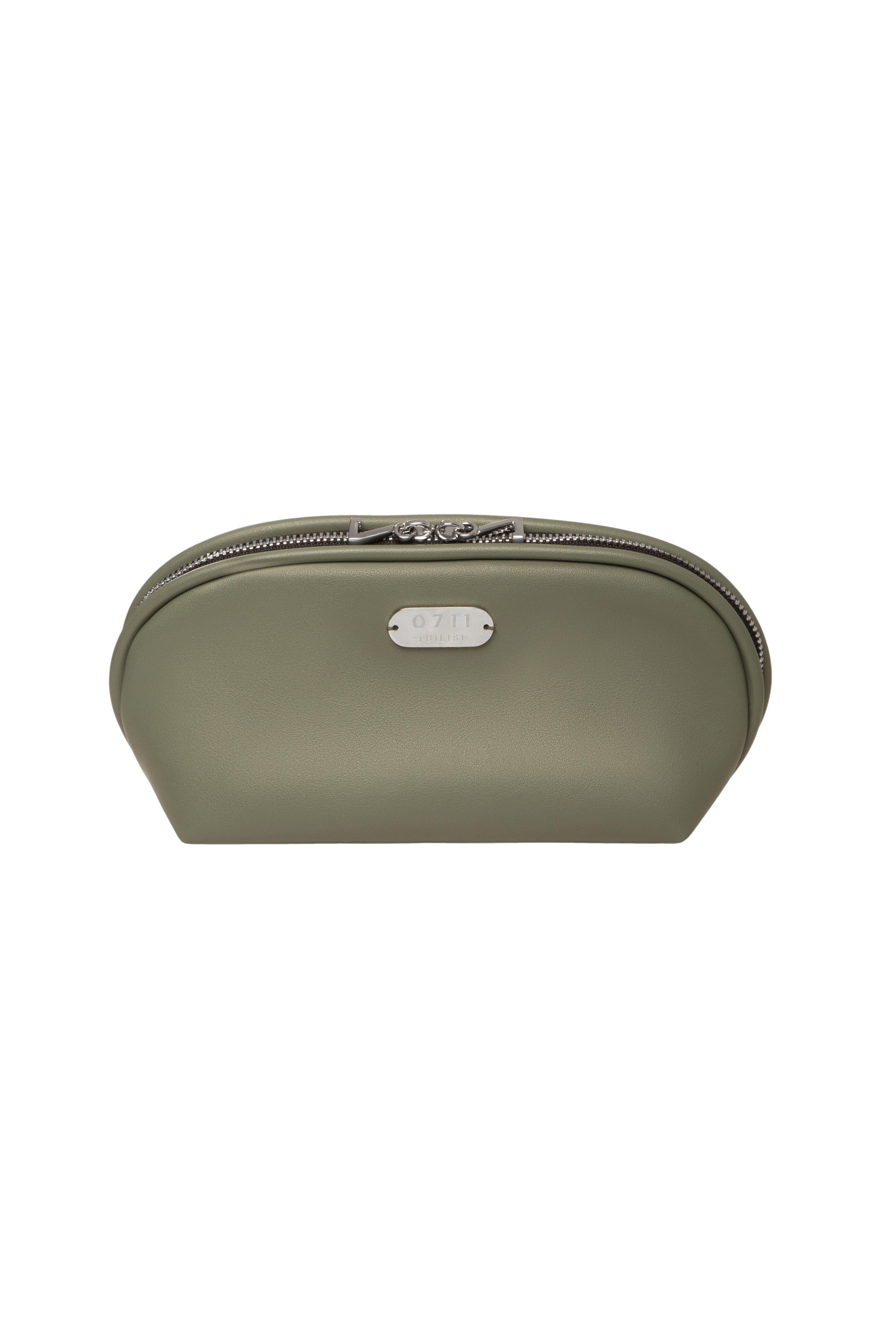 Steel Grey cosmetic pouch with signature zip closure, logo at the front & soft corners.