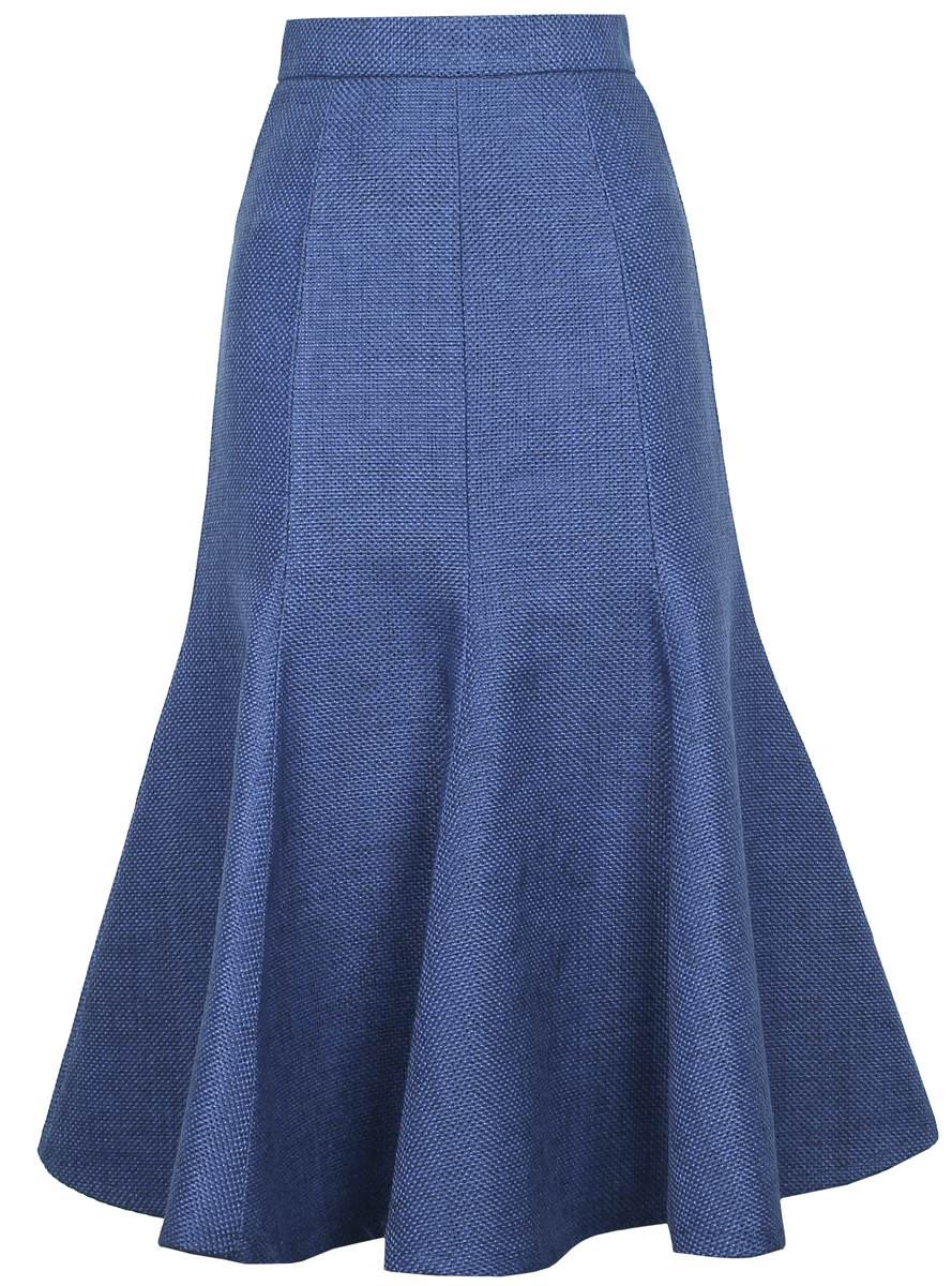 Blue high-waisted, ruffled skirt with side hidden zip.