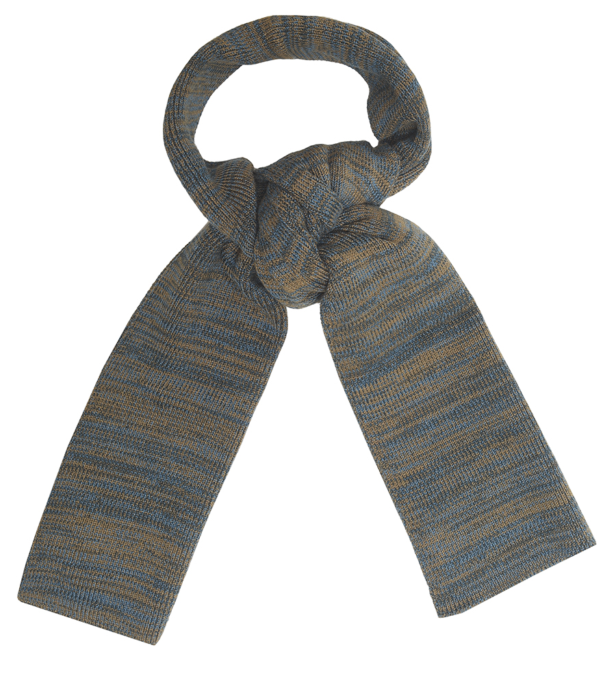 Blend of teal, khaki and brown ribbed knit wrap up scarf.