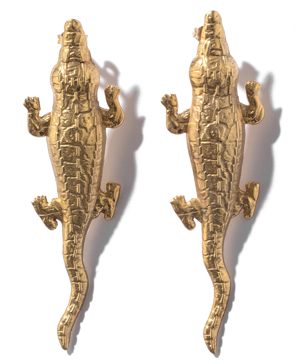 Silver 24ct gold plated crocodile earrings with one swirling tail and push-back fastening.