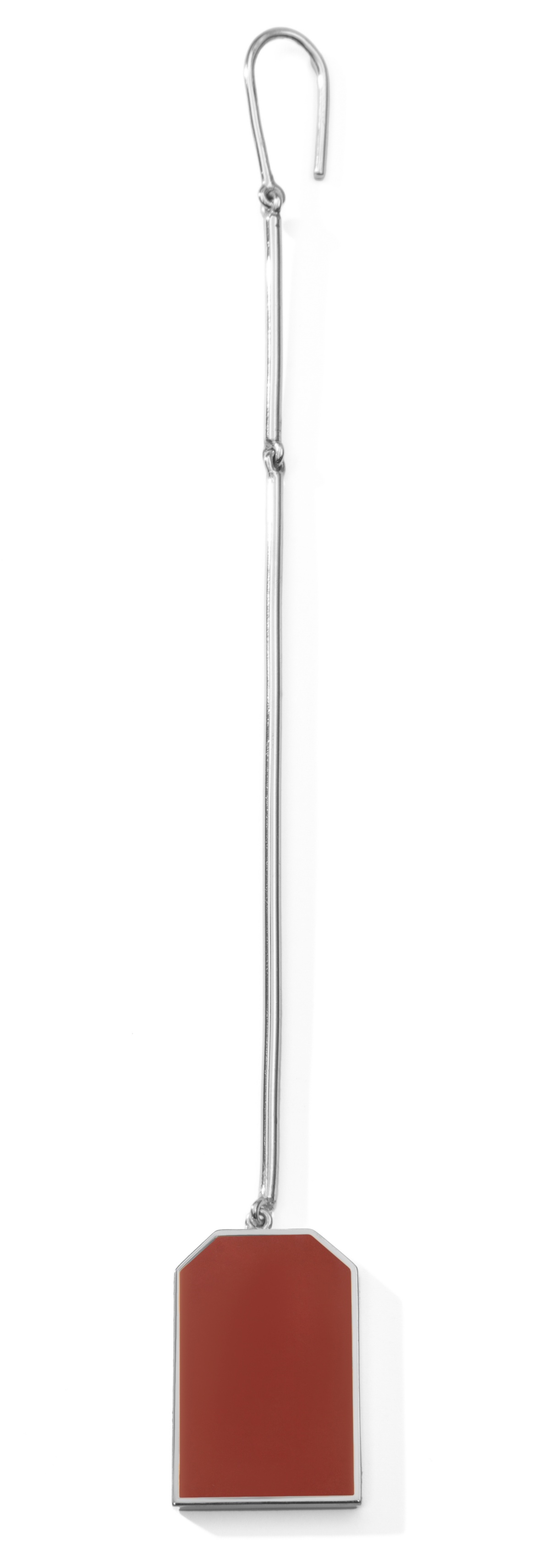 Silver mono earring with jasper stone, two moving axises, octagon shaped detail and hook fastening.